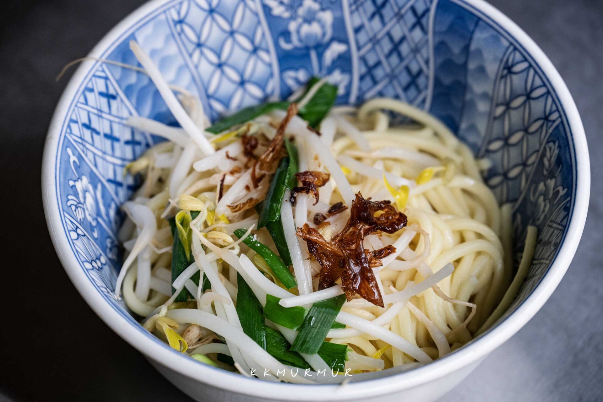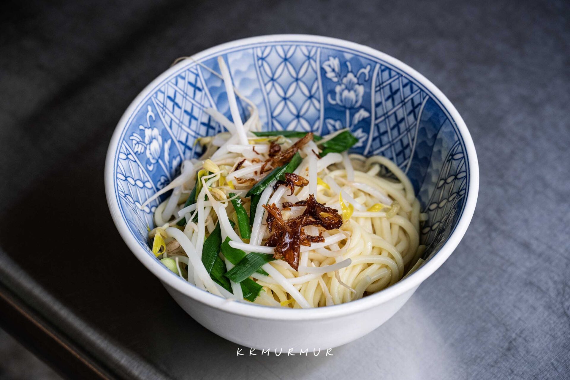 【三合一】就是陽春麵加肉加蛋加餛飩,湯頭成色乍看較為清淡,但實際喝起來不會感到太過平乏單調,那豬油與油蔥酥的香氣,賦予這碗陽春麵濃厚的古早味。
