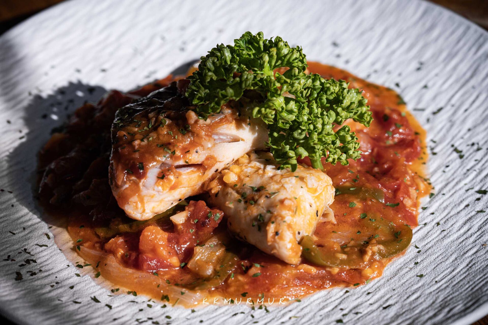 這品【卡迪斯燉魚】是羅塔島的特色菜餚,揀選新鮮鱸魚排佐以店家特製的番茄紅醬,香料的辛香誘人,加上那帶點酸甜的滋味,吃起來爽口又溫順,不會容易感到膩口,魚肉部分也是鮮美又細緻,好吃。