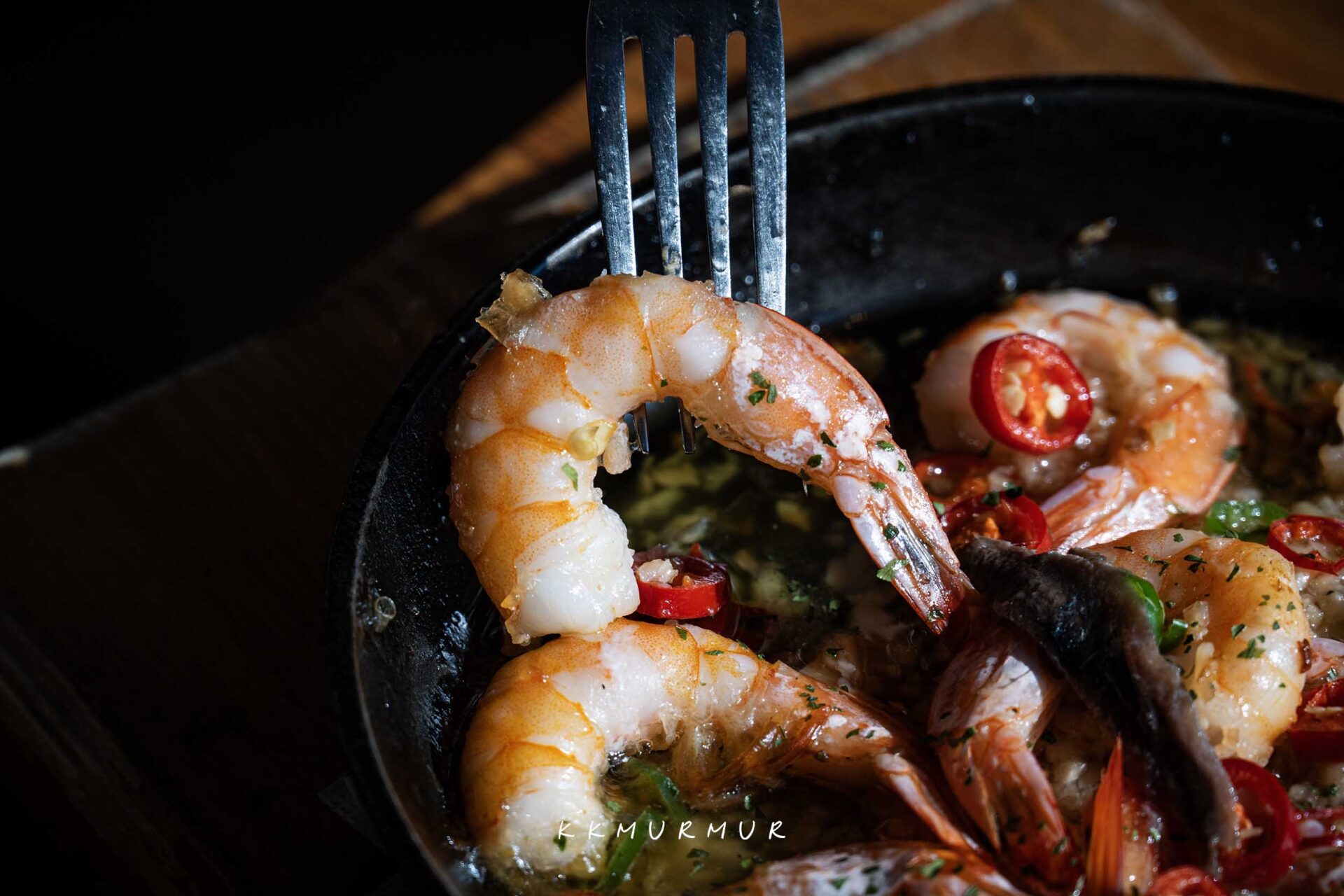 【鯷魚辣炒蝦】很不錯,辣椒的辛香與辣感,交織鮮明蒜香與鯷魚的鹹香,濃郁又帶點微辣的氣息很對味,蝦子本身口感不錯也很入味,將餐前麵包搭配醬汁或蝦子一品嘗,也十分的優秀!