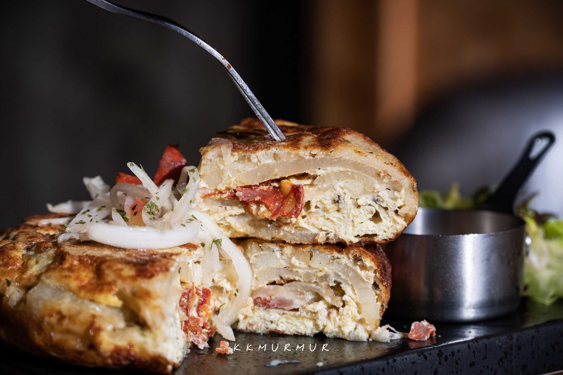 【西班牙臘腸馬鈴薯蛋餅】是西班牙的國民美食之一,那厚度很讓人過癮,吃起來兼具了鬆軟與飽滿口感,蛋香濃郁鮮美,馬鈴薯的香氣也是雅緻而耐吃,搭配著鹹香的臘腸,讓整體的層次感更為豐厚!