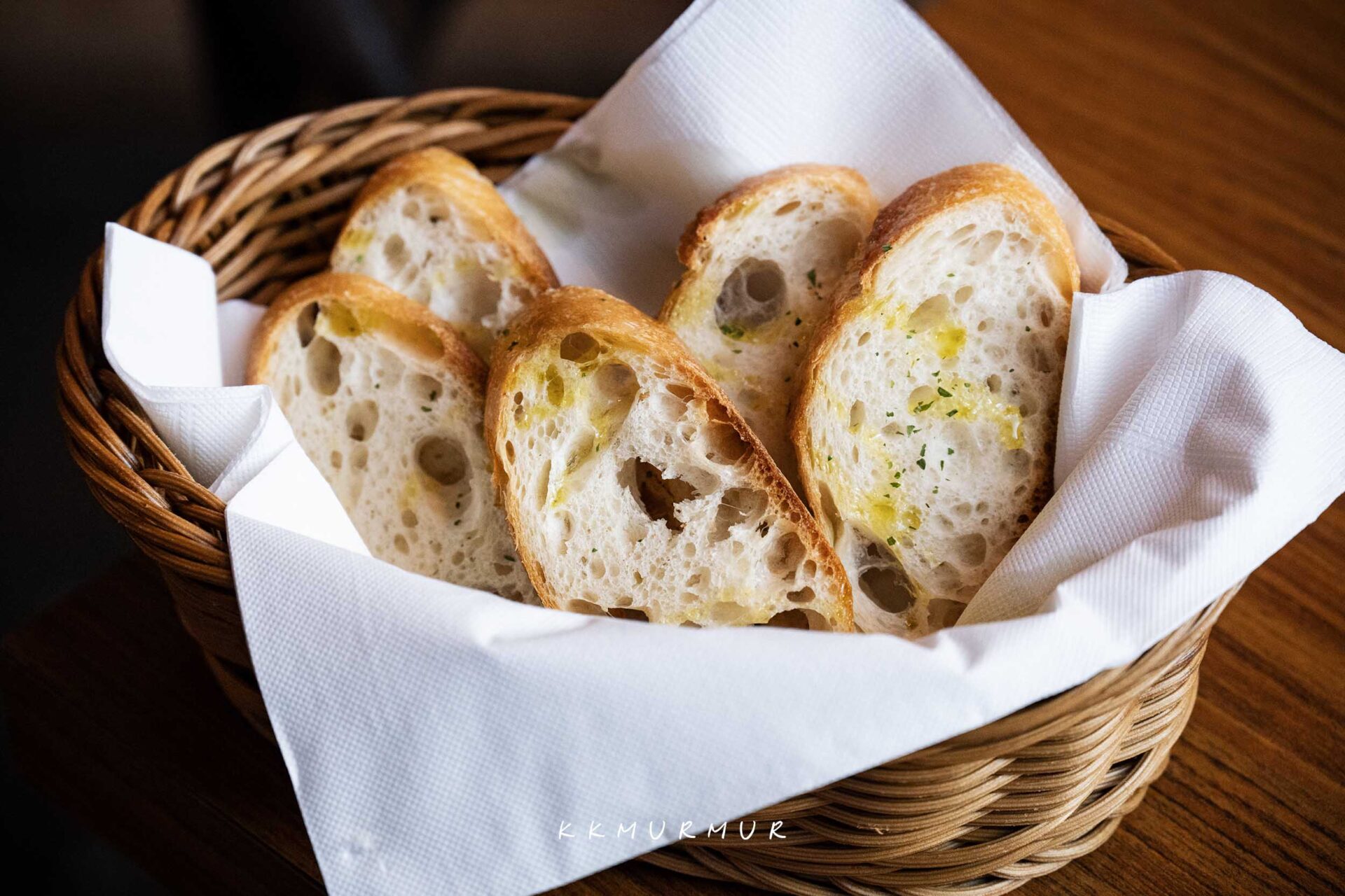 一開始,會先上【餐前麵包】,烤得帶點酥脆口感,無論單吃或沾前菜、主菜的醬汁一起搭配品嘗都滿合適且開胃。