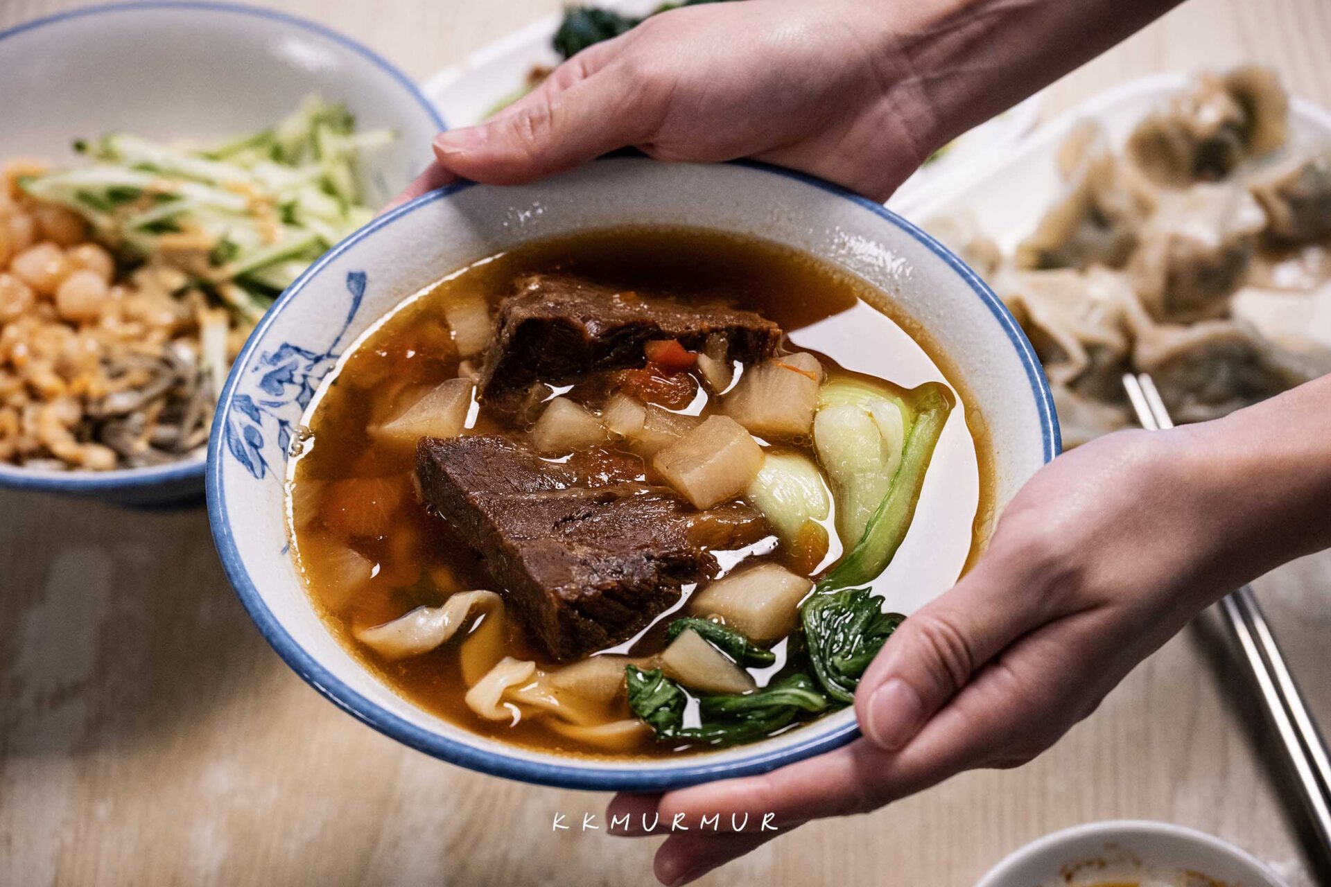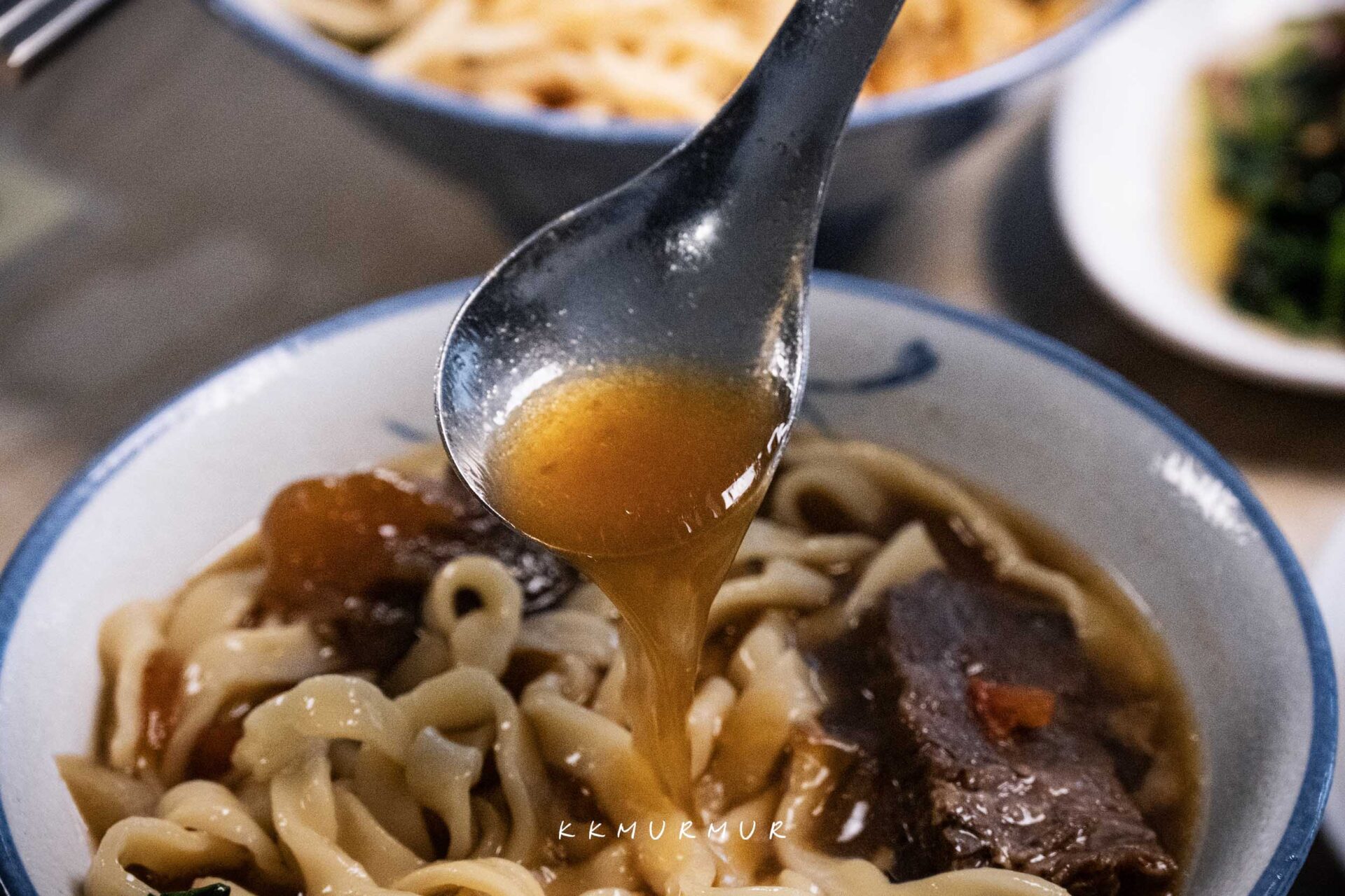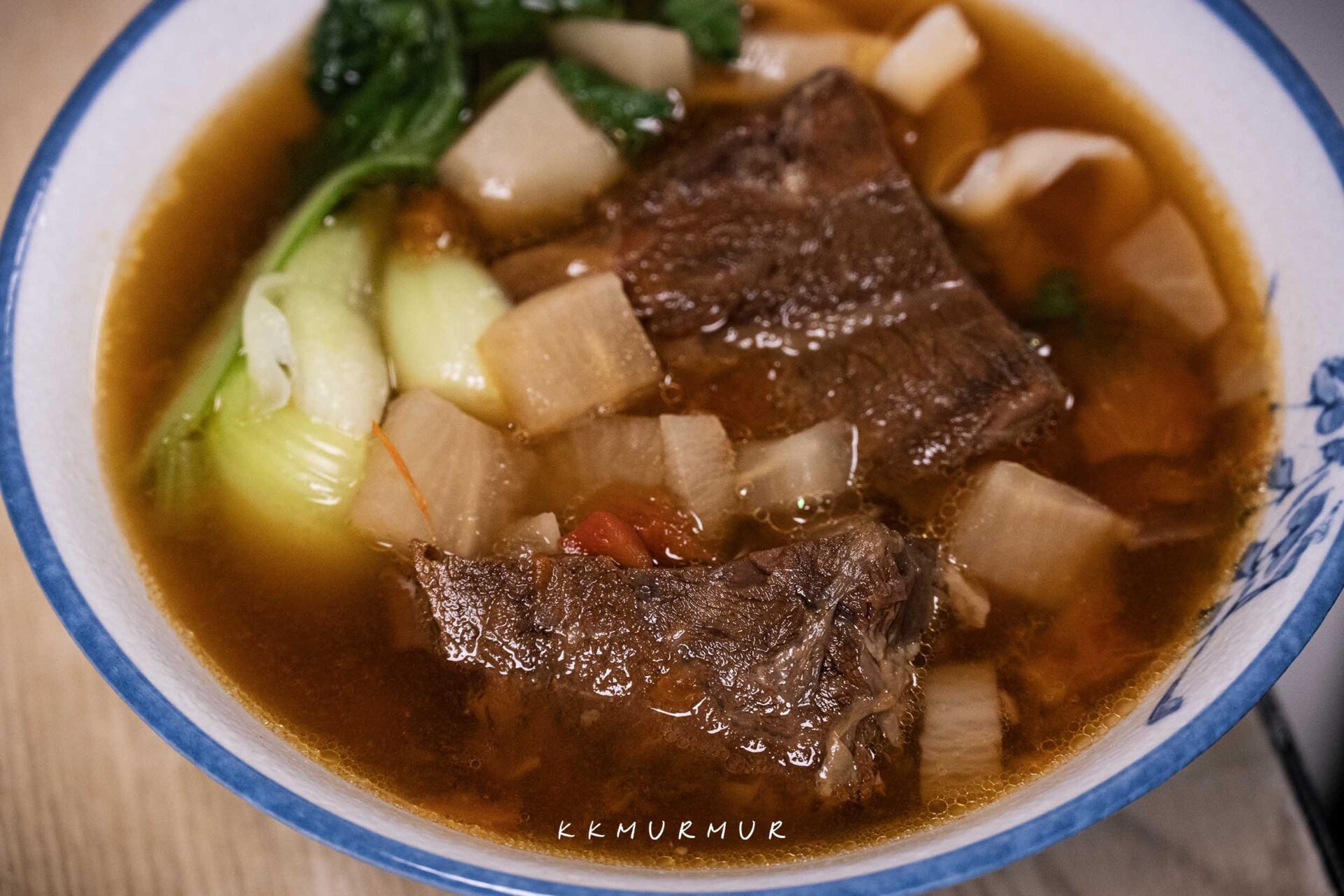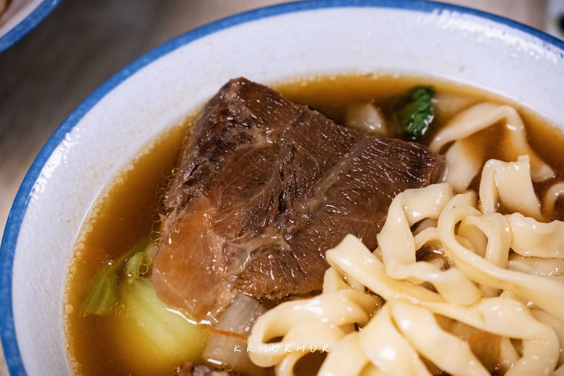 寬麵體還不錯,咀嚼麵感很適中,另外湯頭也是一大特色,我覺得喝起來有點介於紅燒與清燉湯頭中間的風格,乍看紅燒湯的濃郁色澤,實則喝起來非常的清甜溫順,層次感也不會感到太過平乏或單調,很順口、爽鮮的口味,能感受到食材的自然甘甜,是那種會讓人想一喝再喝的路線。然若是偏好濃醇過癮系湯頭的客人,這可能會跟習慣的風味有些落差。