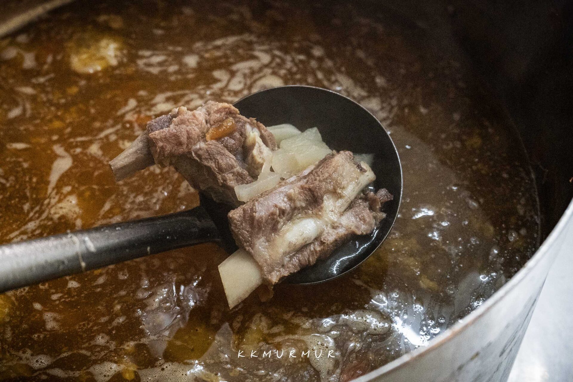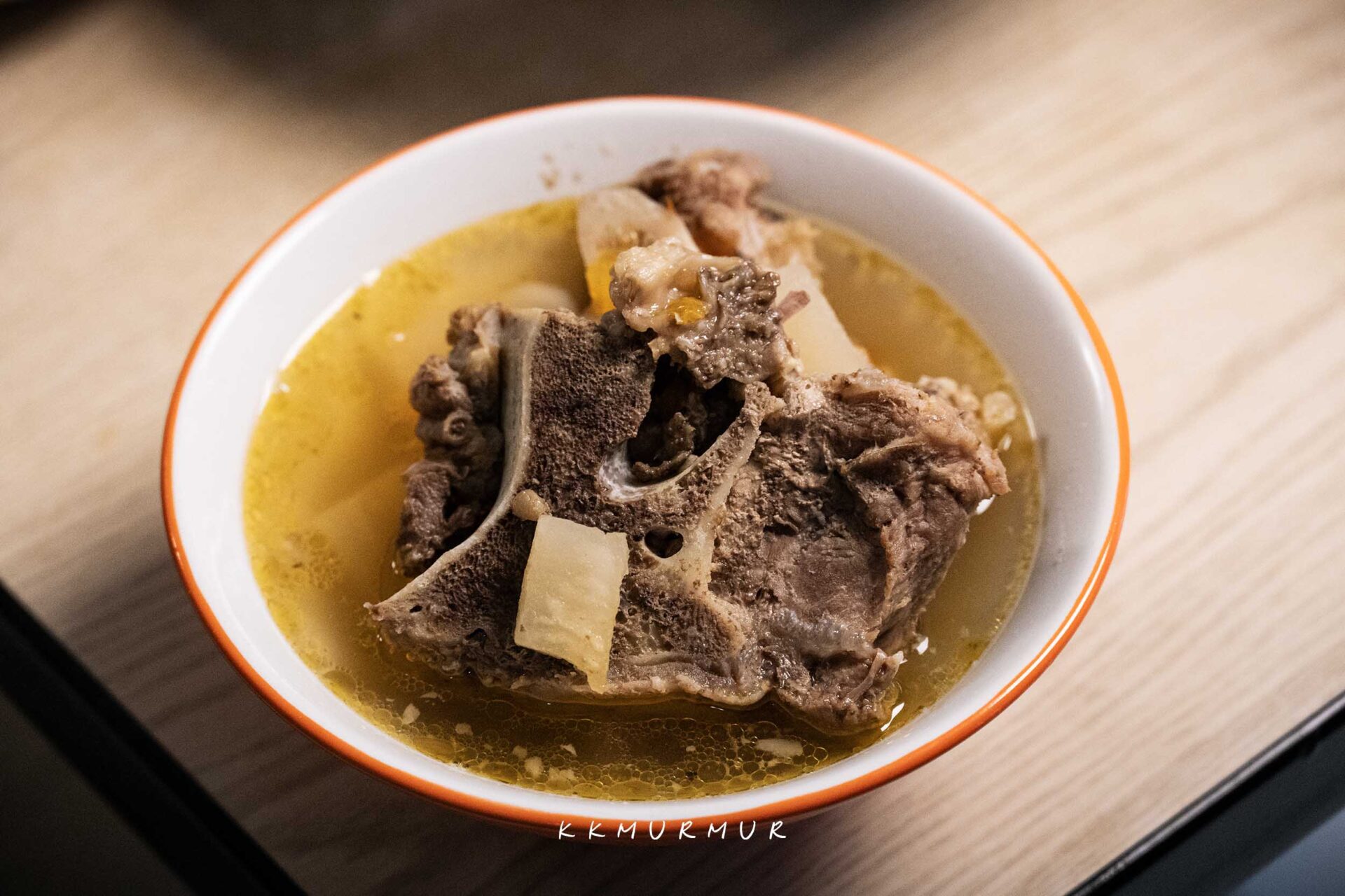 另外,乾麵附贈的湯品是【蕃茄蘿蔔排骨精力湯】,旁邊有一大鍋可以讓點乾麵的客人自己取用,並有規定每人最多取4塊排骨,這點須留意一下哦。