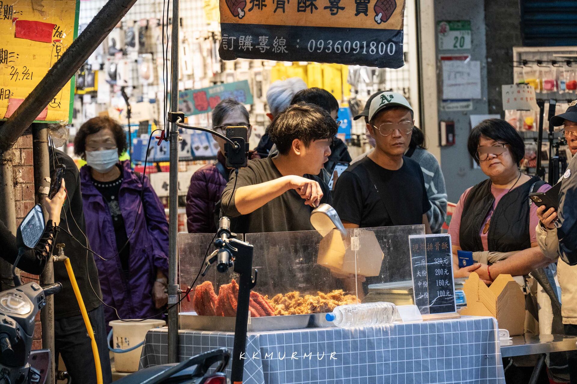 這天【何家百年祖傳排骨酥】是到內湖737商圈擺攤販售,下午四點半準時開賣,我們大約在開賣十分鐘後抵達,發現人潮爆滿、生意超好,每個路過的人都會停下來看怎麼這麼多人排隊,有夠厲害的啦!
