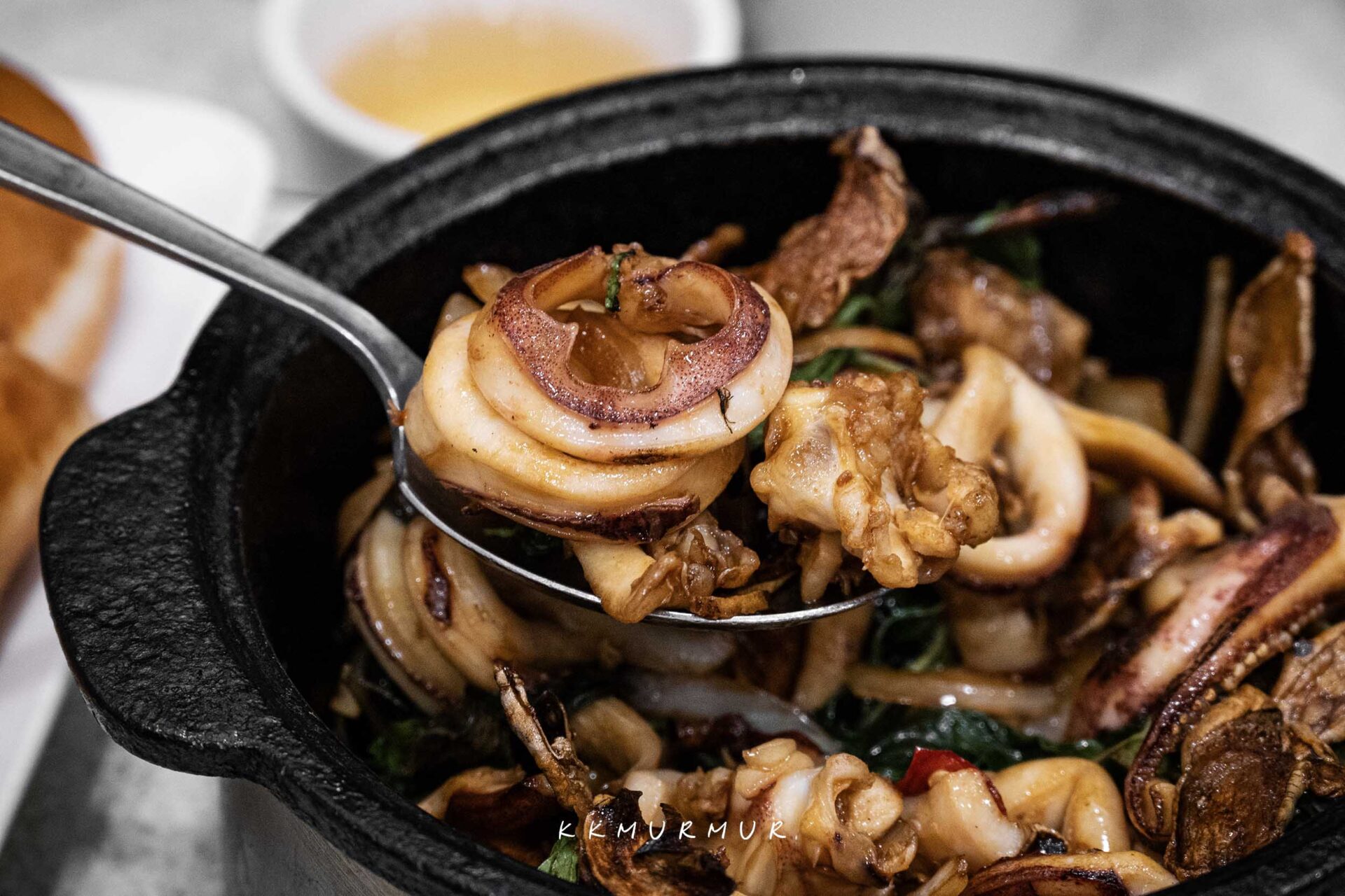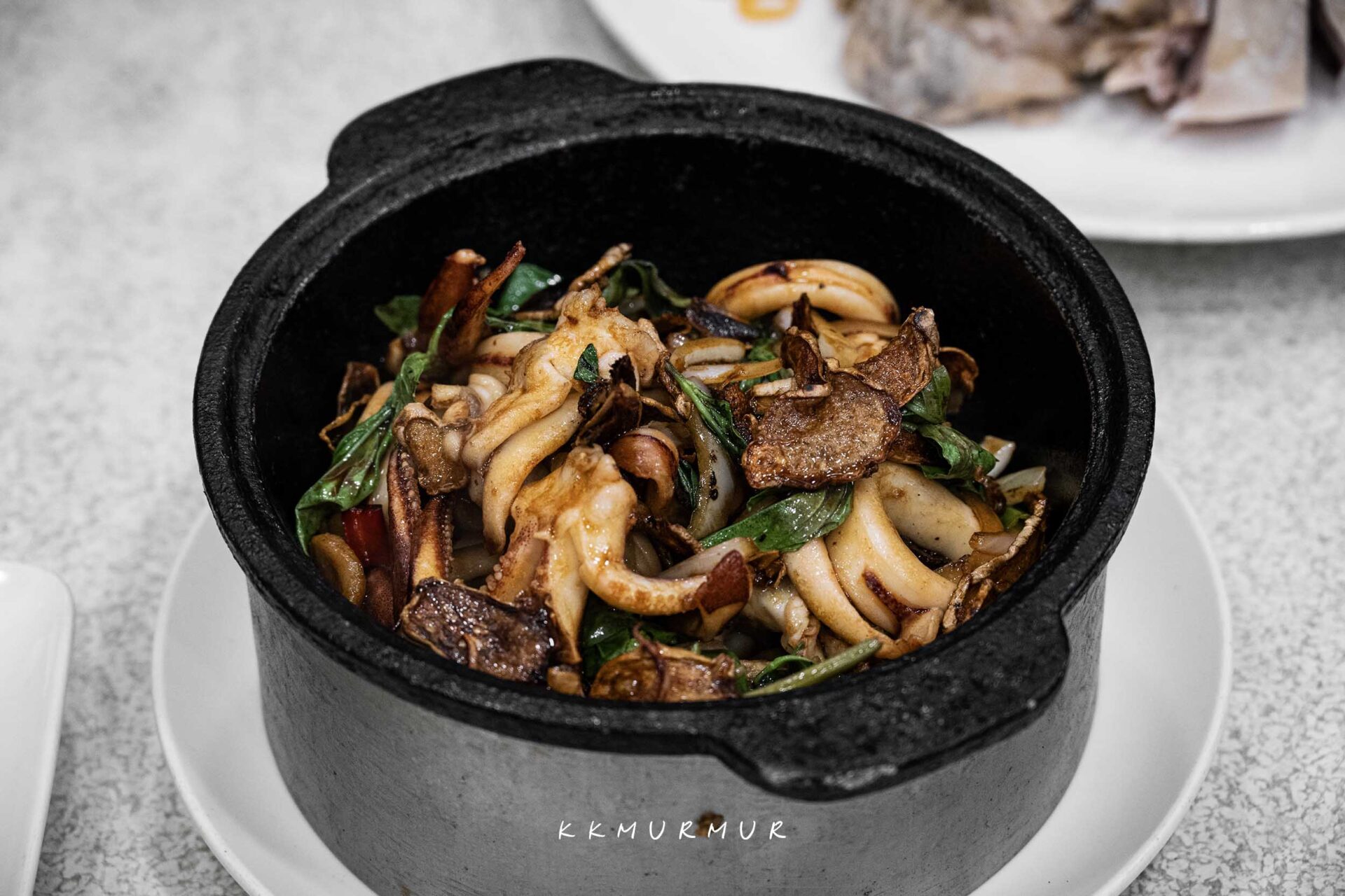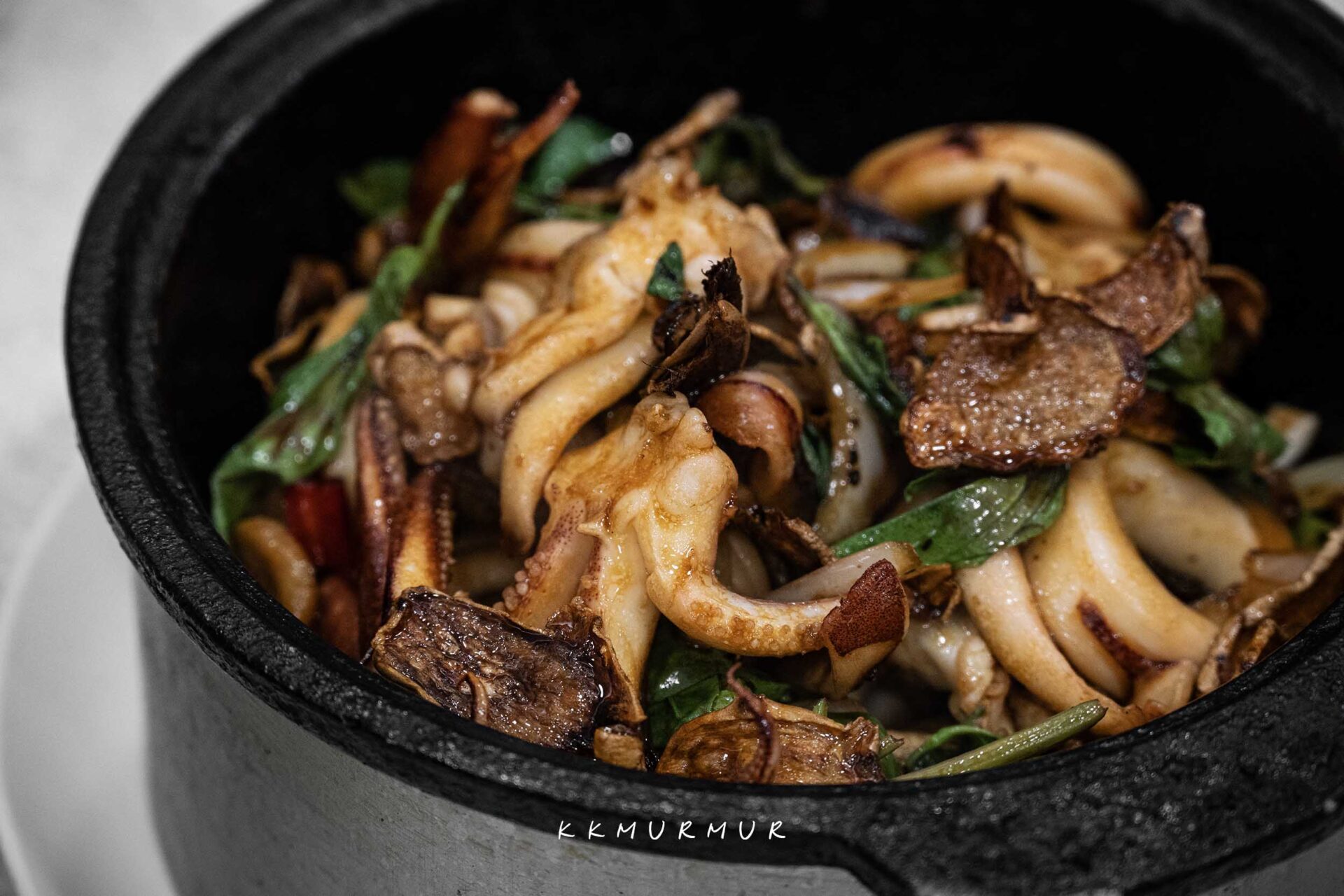 【三杯中卷】好吃欸,中卷彈牙又鮮美、新鮮度很不錯,與九層塔、蒜頭、薑片一起大火快炒後,香氣十分逼人,鹹香中帶點微甜,卻不會太過強烈或厚重,整體是夠味兼具順口的路線,大人小孩都會喜歡!
