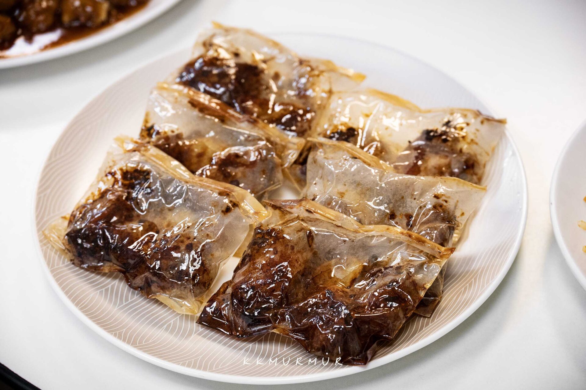 【秘製紙包雞】是這裡的招牌菜色,以特製紙將醃過的雞肉與香料一起包入製成,香氣還不錯,但這天品嚐起來肉質稍嫌有點太緊實,與想像中的水嫩多汁不太一樣,訂價上我覺得不算太便宜,整體來說中規中矩,未來若回訪應該不會再點。