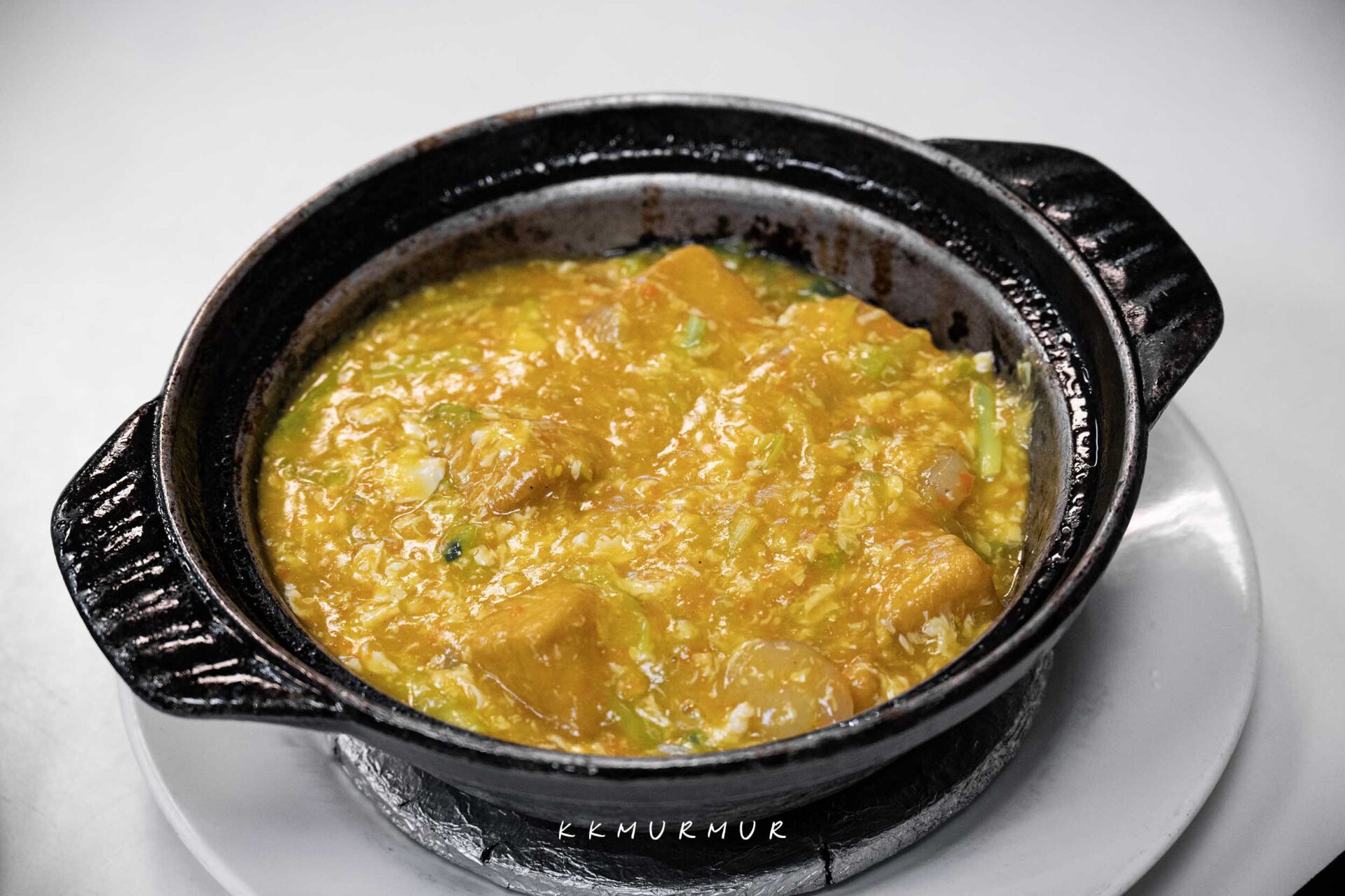 【蟹黃豆腐煲】一上桌的香氣就很誘人,水嫩滑順的豆腐,在飽吸精華醬汁後很對味,鮮美十足、鹹度控制有很得宜,整體可說十分的下飯,也不會過於油膩或厚口!