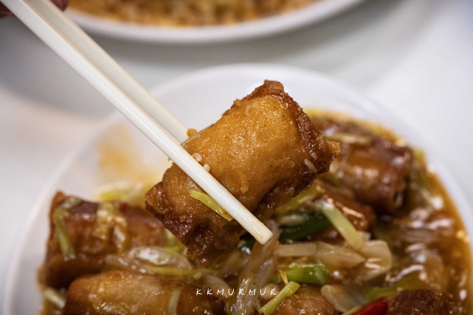 【韭黃百花油條】是很經典的粵菜菜色,也是這裡的招牌之一。將新鮮蝦漿鑲入油條,搭以各式辛香與醬汁佐料一起製作而成。整體呈現是較為濕潤、醬感較明顯的狀態,油條仍保有了一定程度的脆口,蝦漿內餡Q彈而鮮美,韭黃的獨有香氣也賦予了醬汁有記憶點的風味。整體我覺得是好吃的,但新華港式菜館的相對會更深得我心!