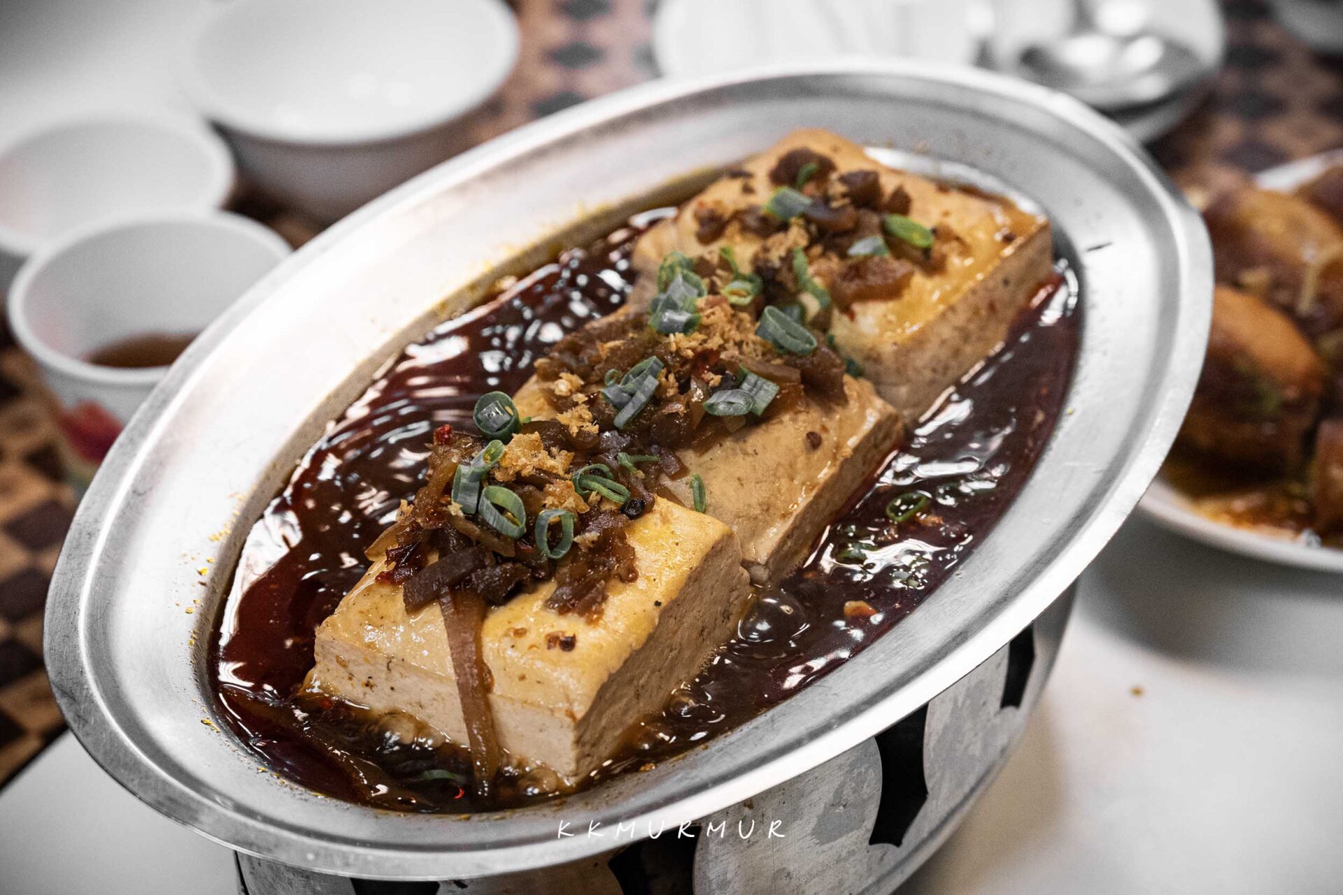 【紅油臭豆腐】不是那種強烈麻辣的類型,而是較為溫潤順口的辣感,整體調味較為淡雅、不算特別入味,倘若平常是偏好清淡口味的客人,應該會滿喜歡的,然若喜歡濃郁口味的人,可能會覺得少了一些層次感。
