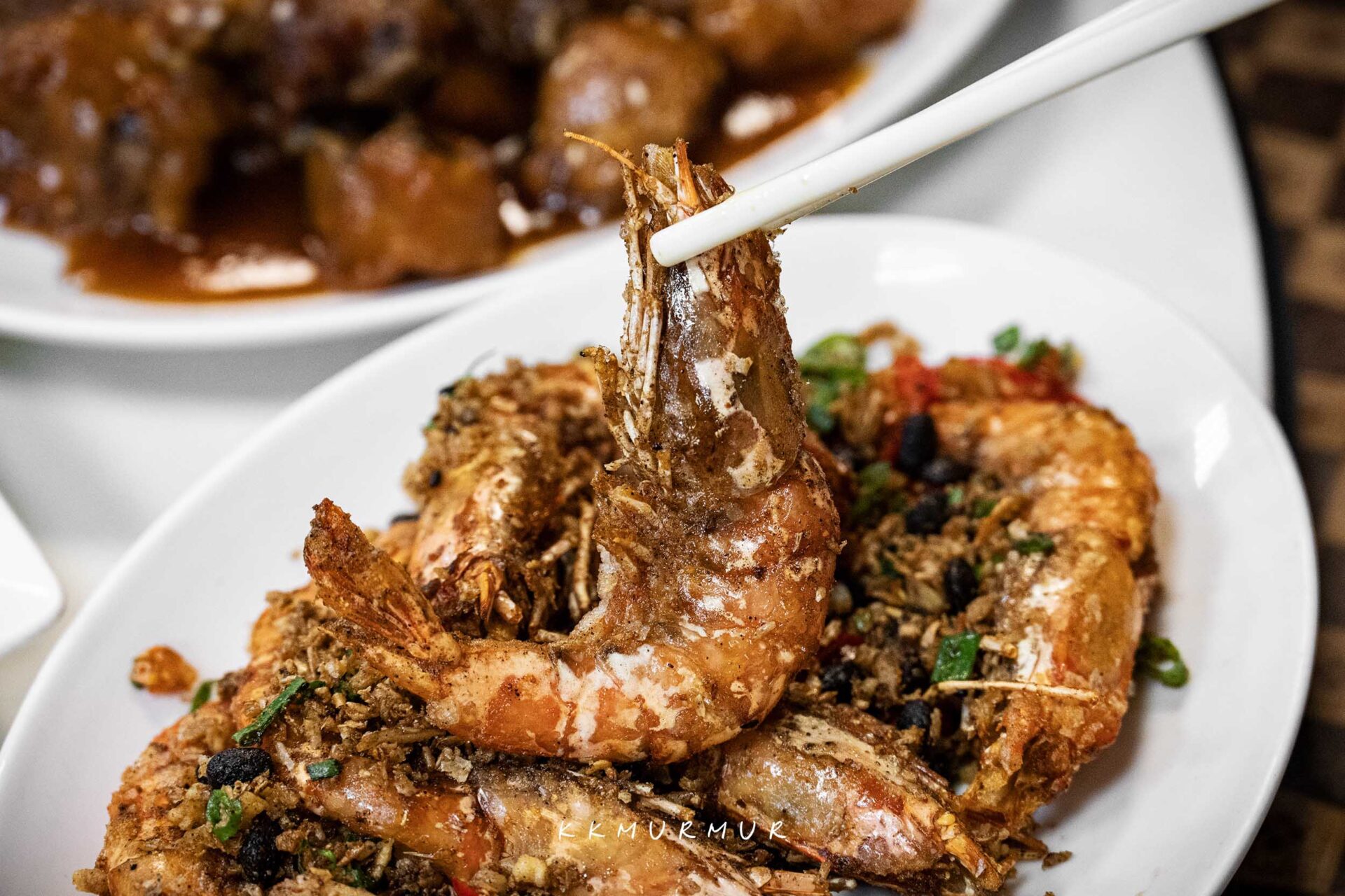 這品【避風塘中蝦】,蒜酥的蒜香、椒鹽與豆豉的鹹香,吃起來入味滿分又十分涮嘴。帶殼下鍋油炸後再行加入辛香佐料大火快炒,炸至酥脆的蝦殼,若能接受的話直接吃很不錯,若是剝殼只吃蝦肉則會更為爽鮮。整體來說滿不錯的,夠味又滿足,但又不會太過厚重或強烈。