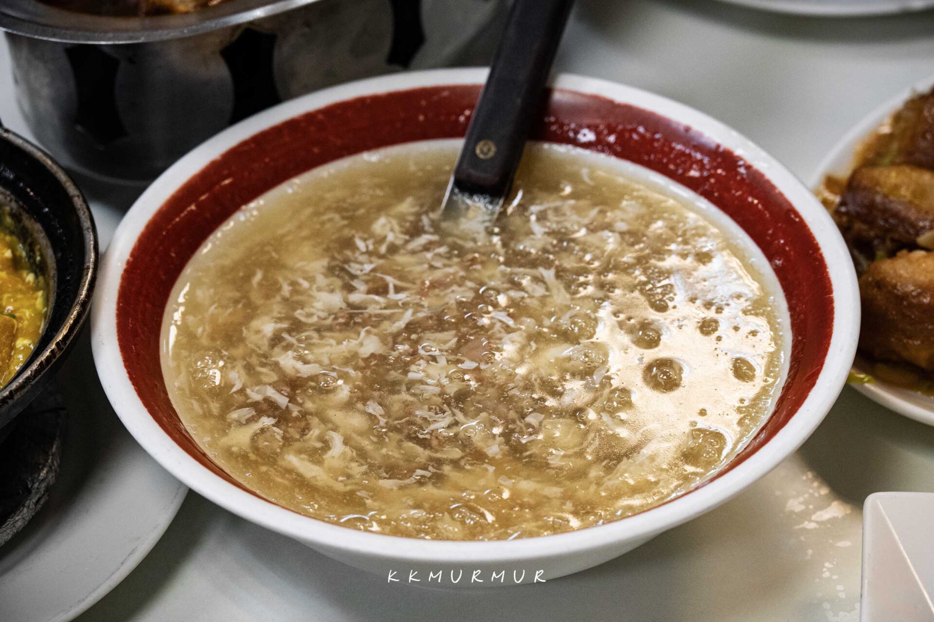 【西湖牛肉羹】是較為溫潤的風格,喝起來帶點清甜尾韻,牛肉丁與蛋花的量還滿多,整體的風味屬性淡雅而順口,作為切換味覺、避免疲乏的菜色來說是挺不錯的。