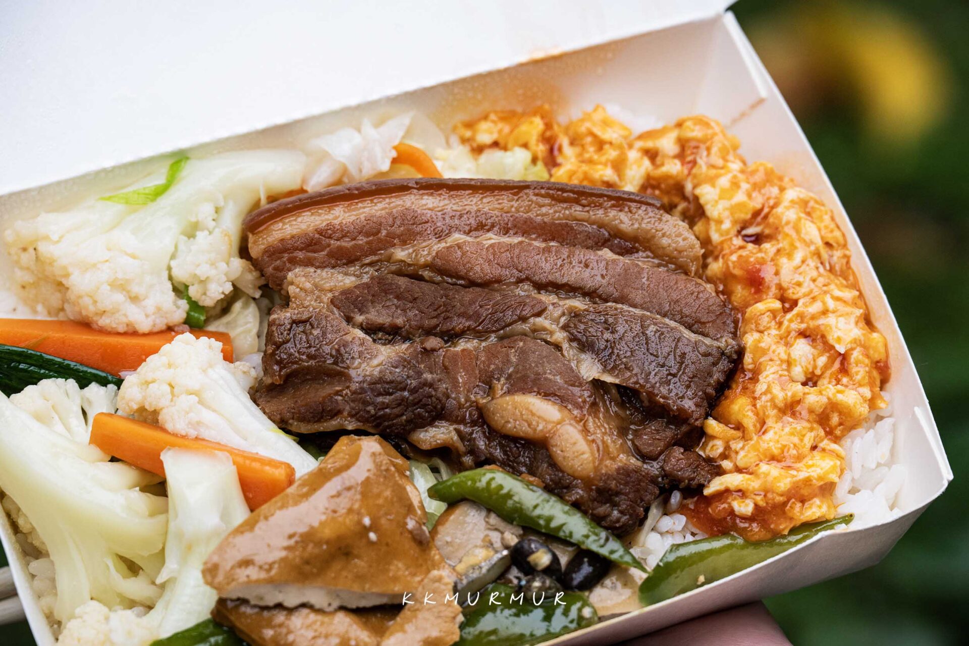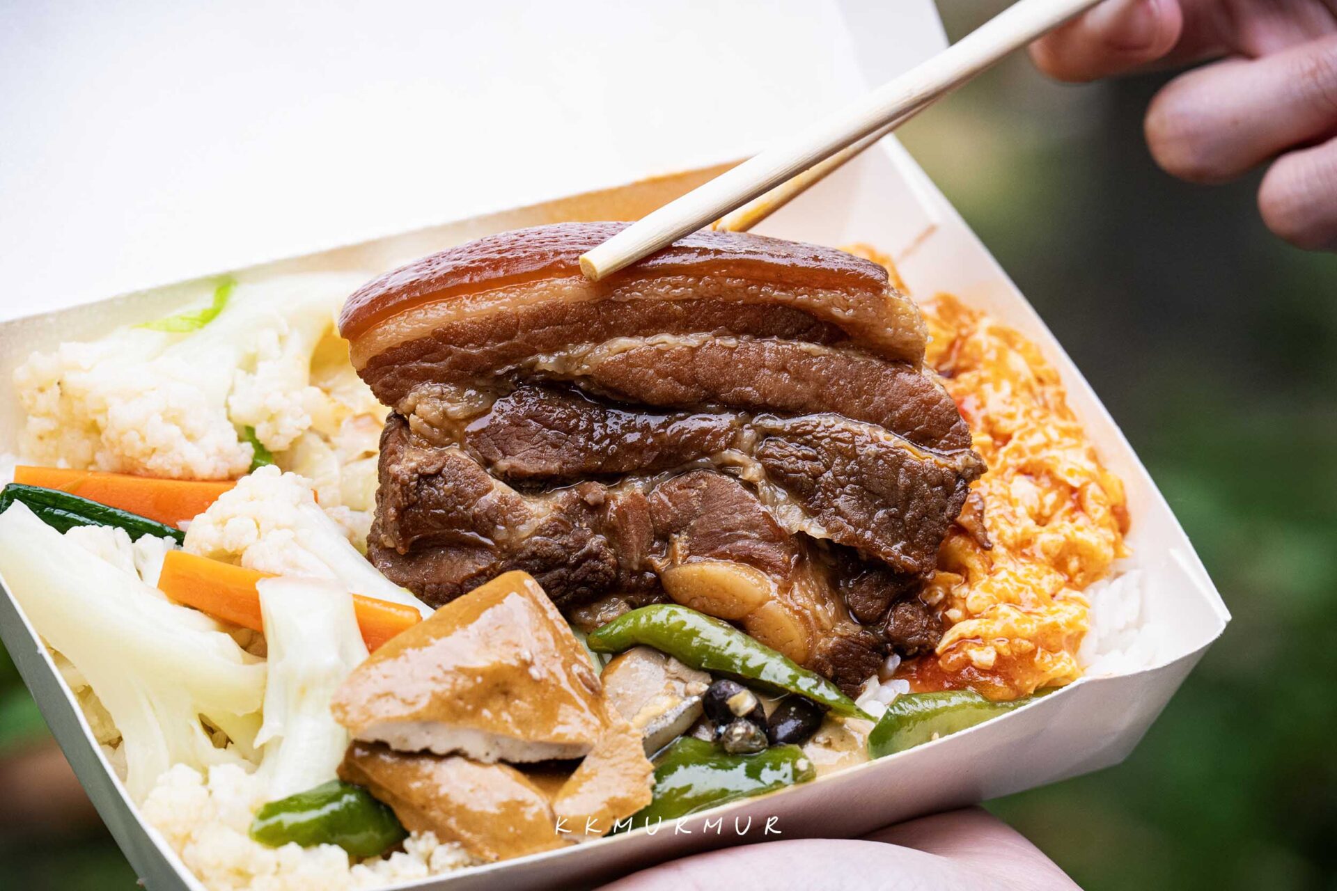 【焢肉飯】還不錯,塊頭滿大且有一定的厚度,外皮帶點Q度與不錯的彈性,肉質軟嫩中兼具著爽快肉感,隨著咀嚼能感受到誘人的肉香與醬香!