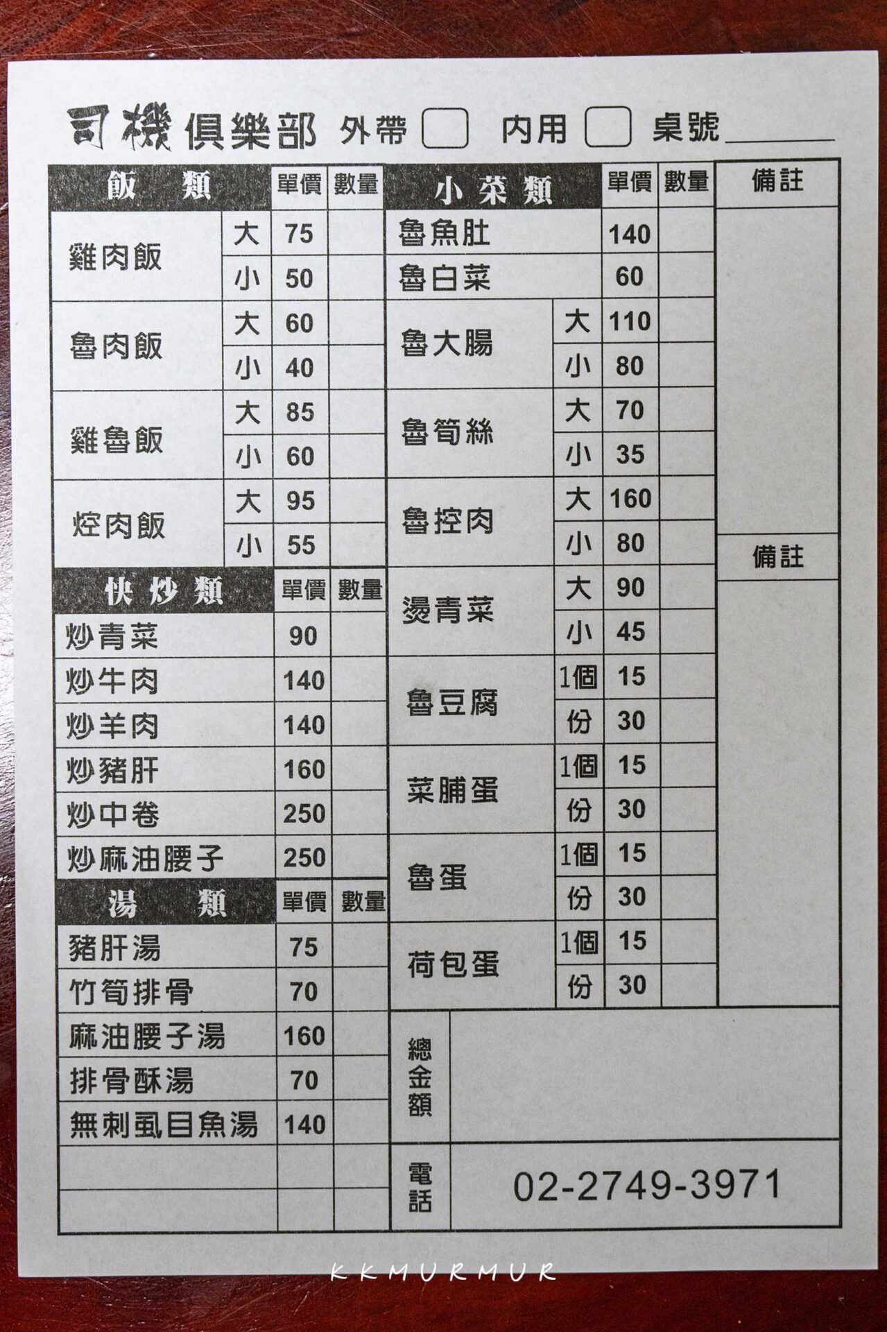 【司機俱樂部】的菜單如上,主食就是雞肉飯、魯肉飯、雞魯飯與焢肉飯,都有大小碗之分,價格也都有清楚標註。另外也有一些小菜、快炒與湯品可以選擇,價格上雖非最便宜,但口味普遍滿不錯,價格也屬合理,主要還是好吃又滿足最重要!