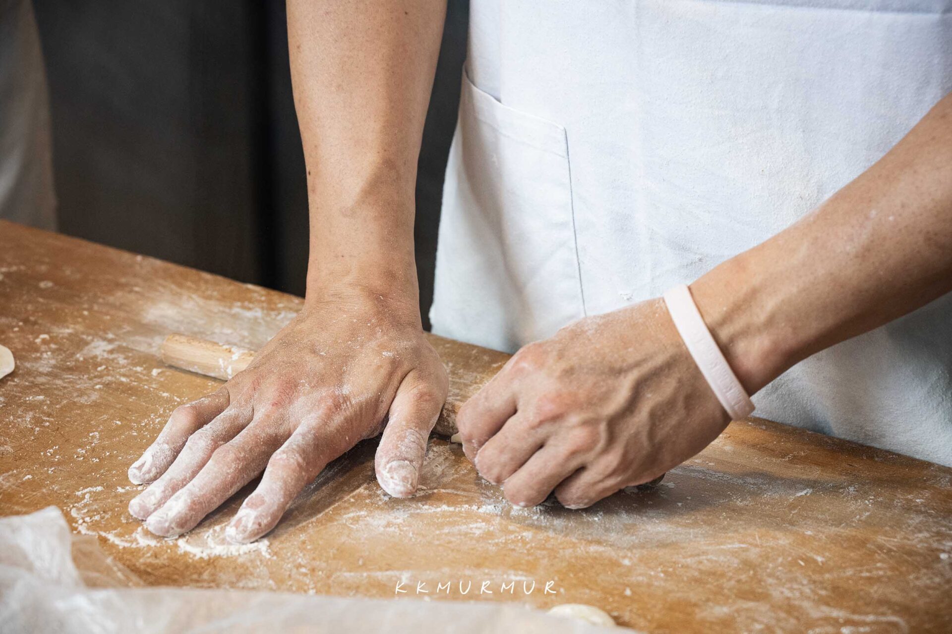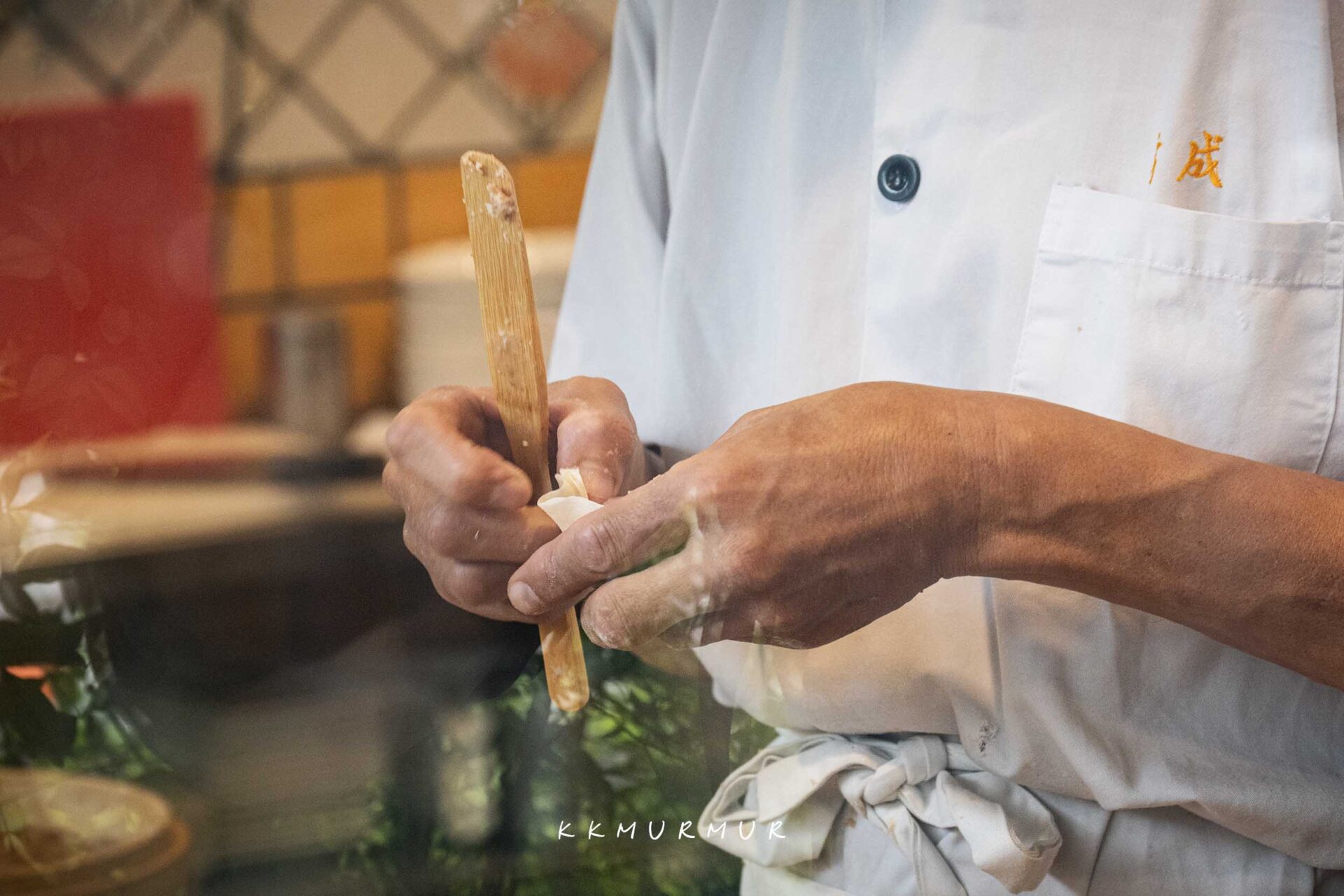 【方家小館】的門口,可以透過玻璃看到師傅們俐落的製作著各式麵點,擀麵、包小籠包等熟稔的技法,在他們的長年的專業與經驗堆疊下,成就道道美味的佳餚。