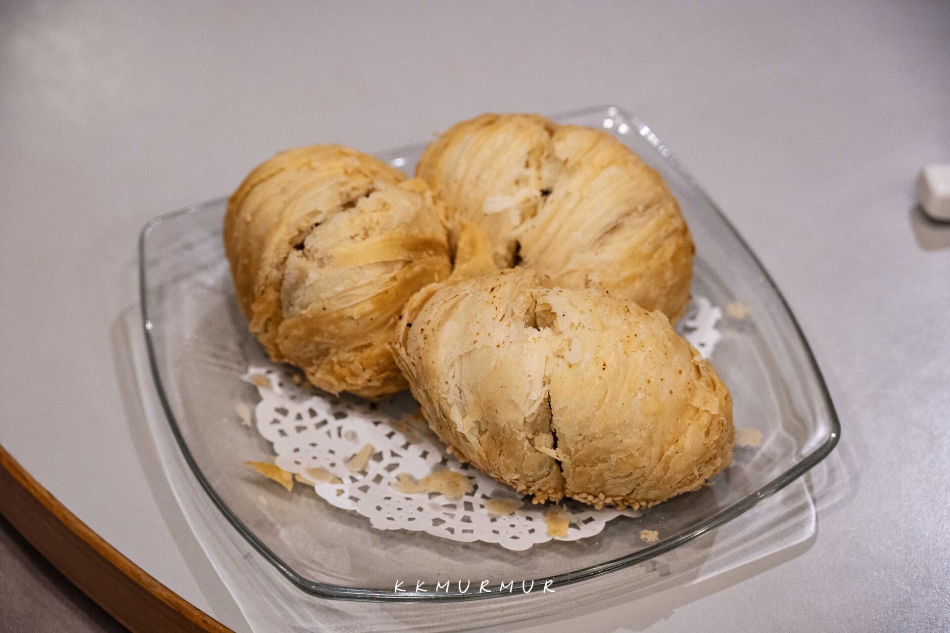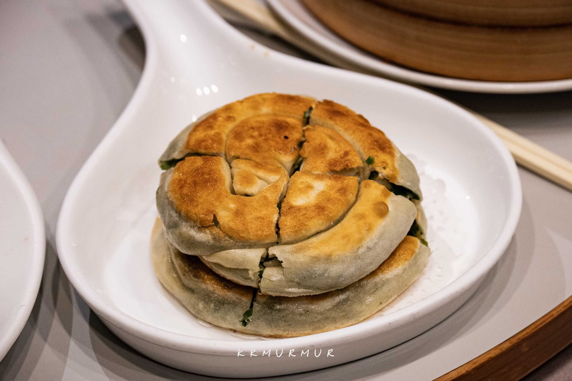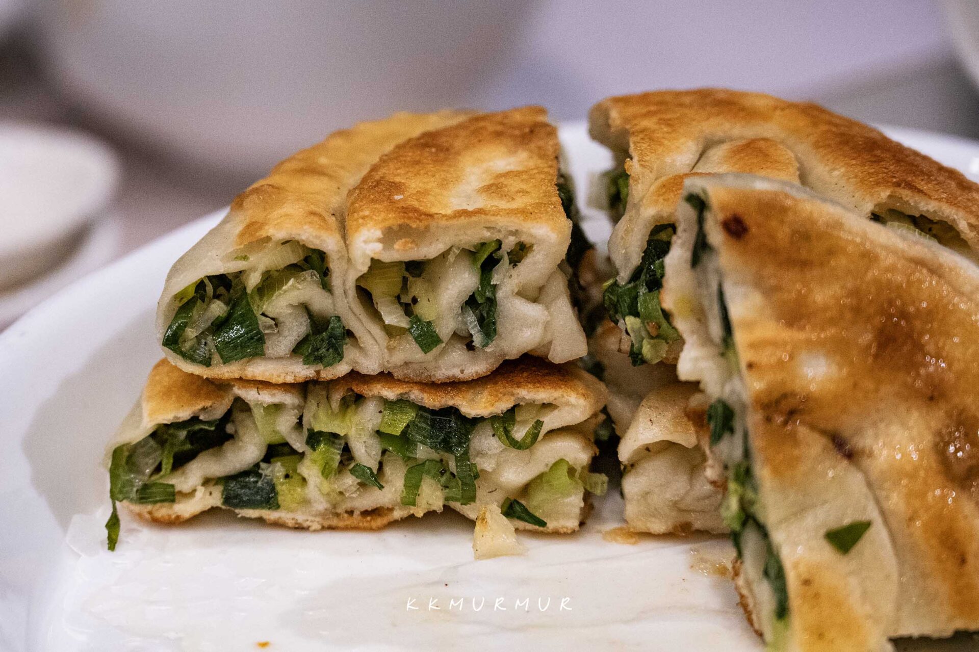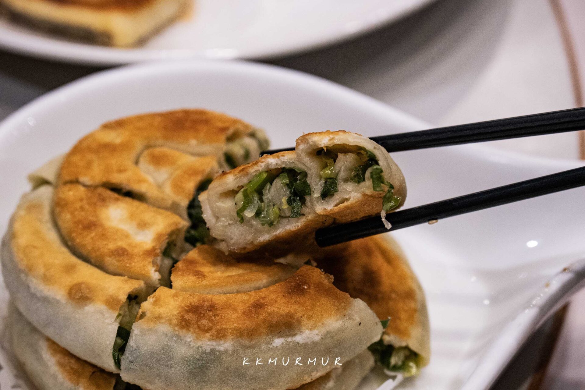 看這【蔥油餅】的橫切面就知道不得了了。外皮煎至金黃帶點焦香,內裡的咀嚼麵感夠勁帶點Q度,大口咬下後能感受到滿滿的蔥,那香氣實在非常的過癮,但又不會太過強烈或重口,越吃越上癮、容易讓人一口接一口地品嘗!