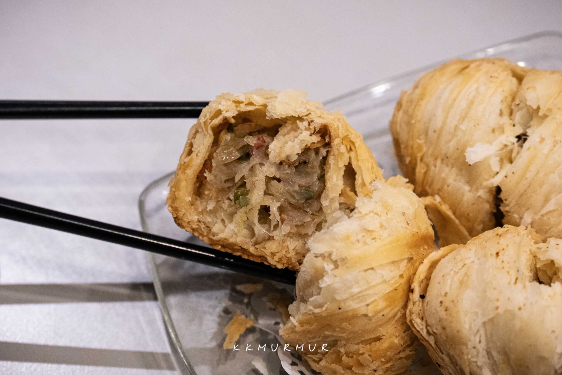 【蘿蔔絲餅】外皮非常的酥口,內餡的蘿蔔絲相當飽滿、誠意滿滿,另外還有蝦米與蔥花包在其中,吃起來鹹香帶汁又夠味,香氣非常的迷人,也絲毫不會太過乾口或油膩,送上桌時熱熱品嘗好好吃!