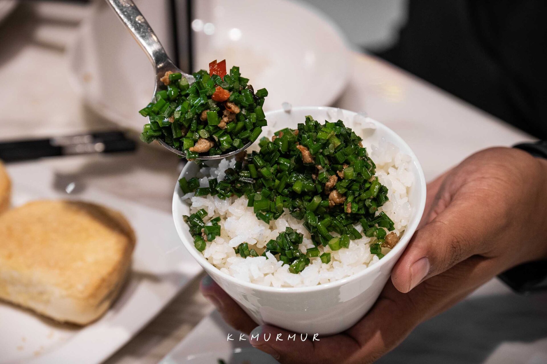 這品很下飯,韭菜花跟肉末在大火快炒後,鹹香帶點微辣,口感上仍保有了一些脆度,整體偏油一些但尚屬是很稱職的白飯大盜。