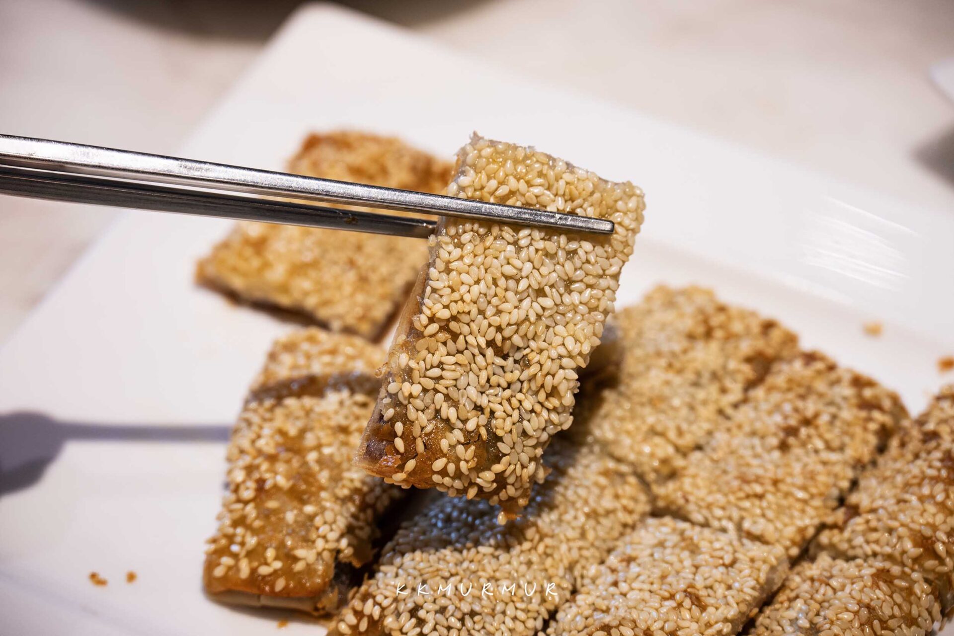 外層酥香脆口並有著滿滿的芝麻,內餡的紅豆沙細膩滑順,整體甜度較高且偏油一些些,作為後甜點是OK的,但我會更喜歡之前吃的提拉米蘇與黑麻豆花撈,整體會更對我的胃口!