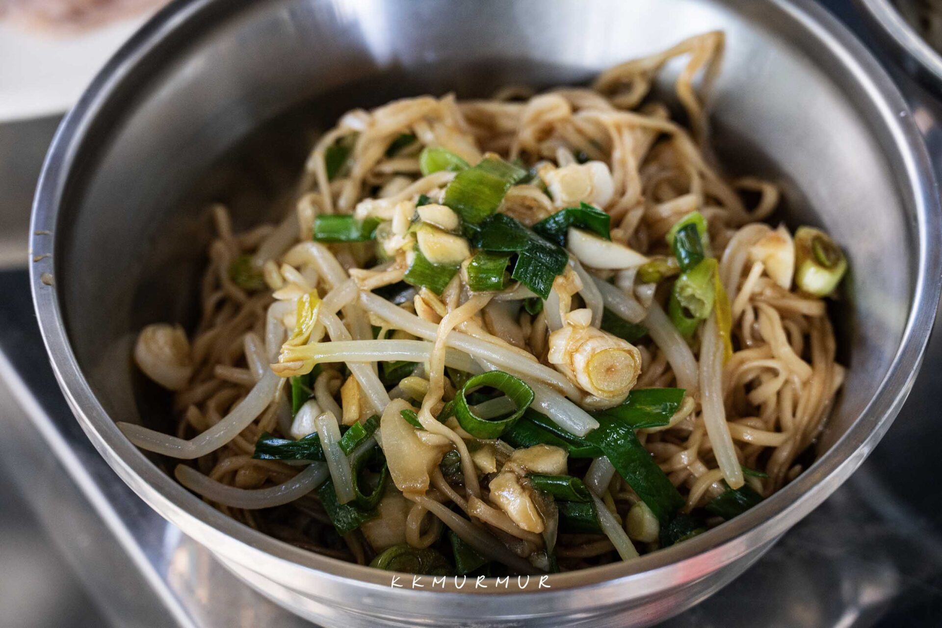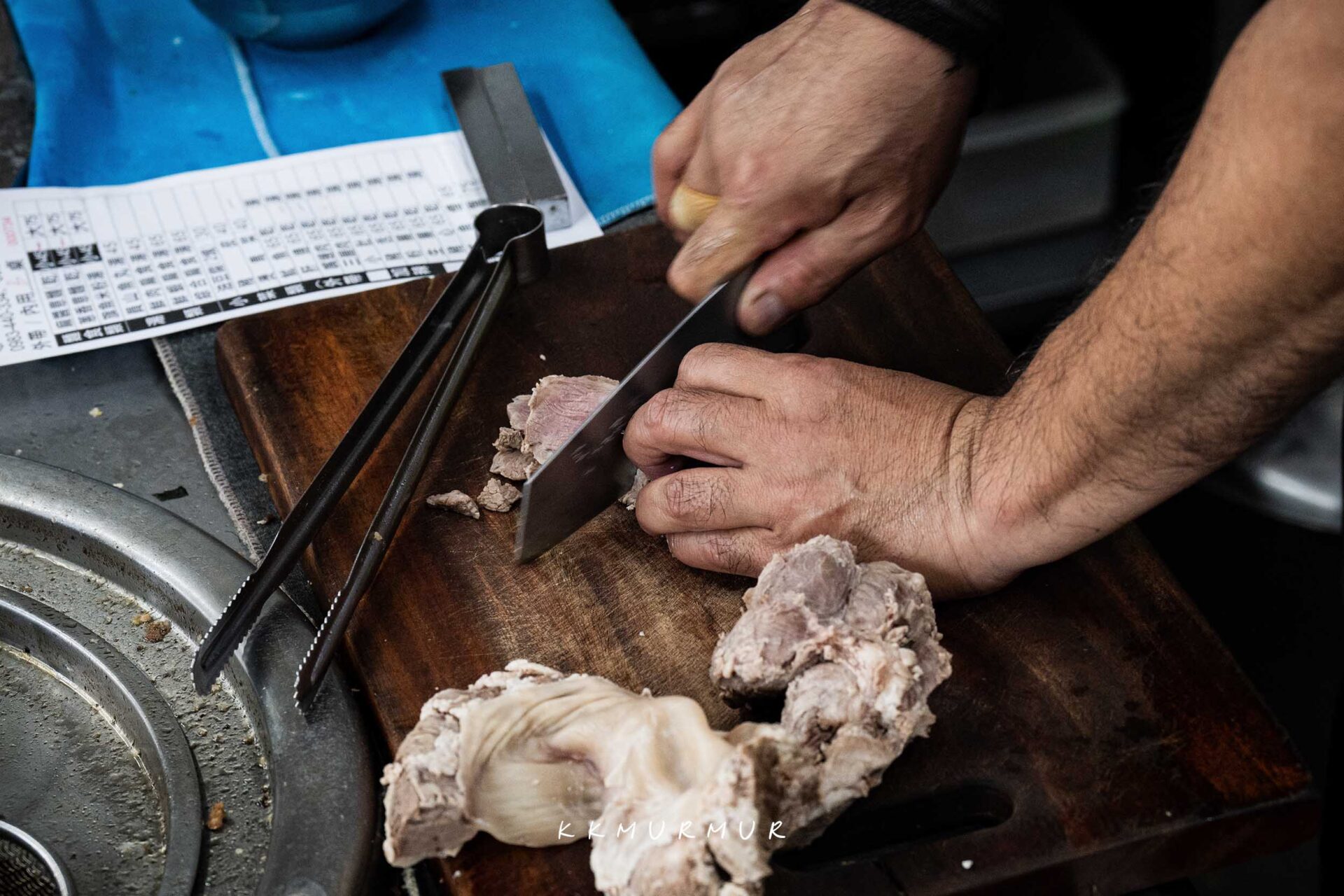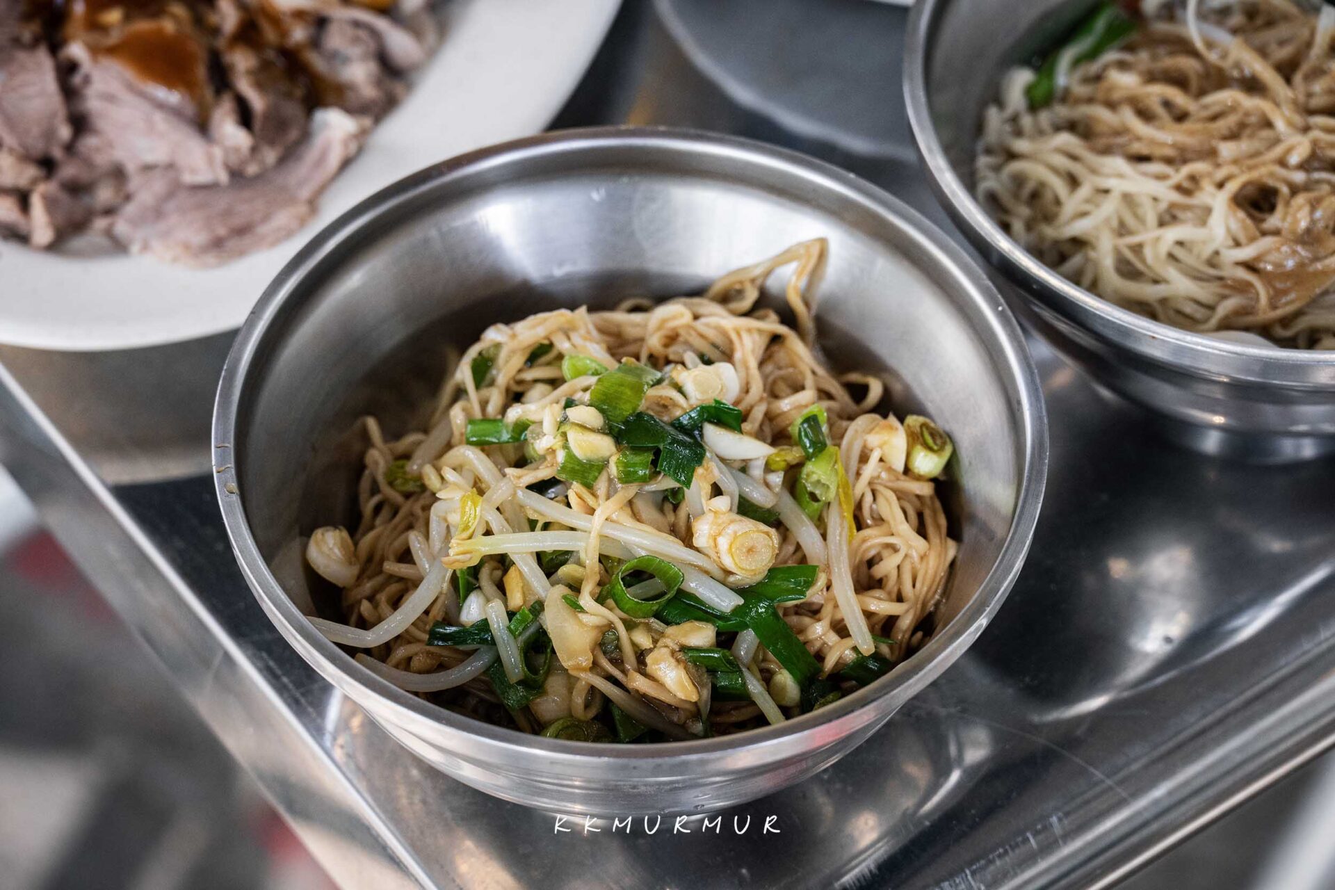 來麵店當然必須配點小菜,看著老闆俐落的切著小菜,唾液瘋狂分泌!