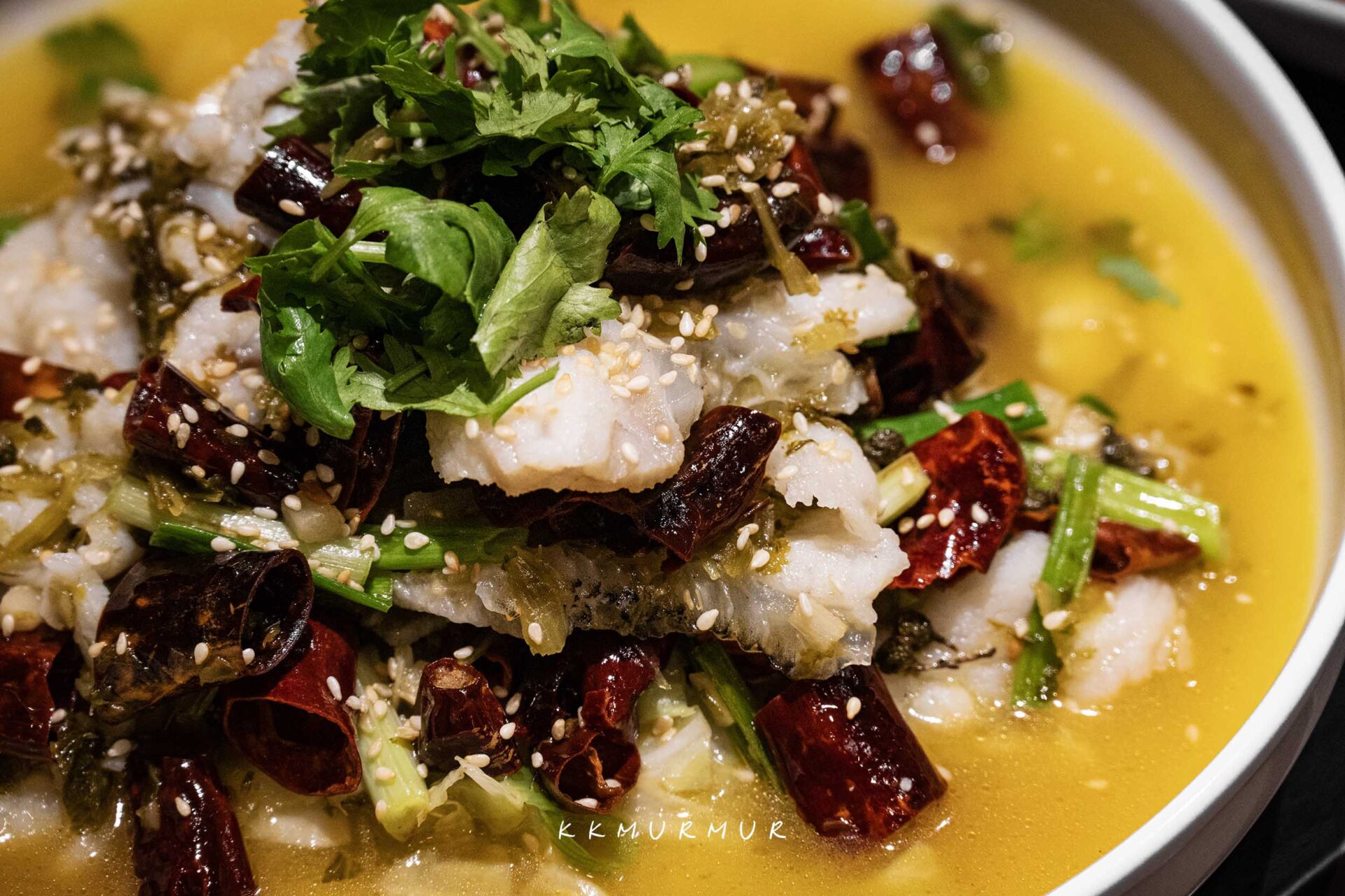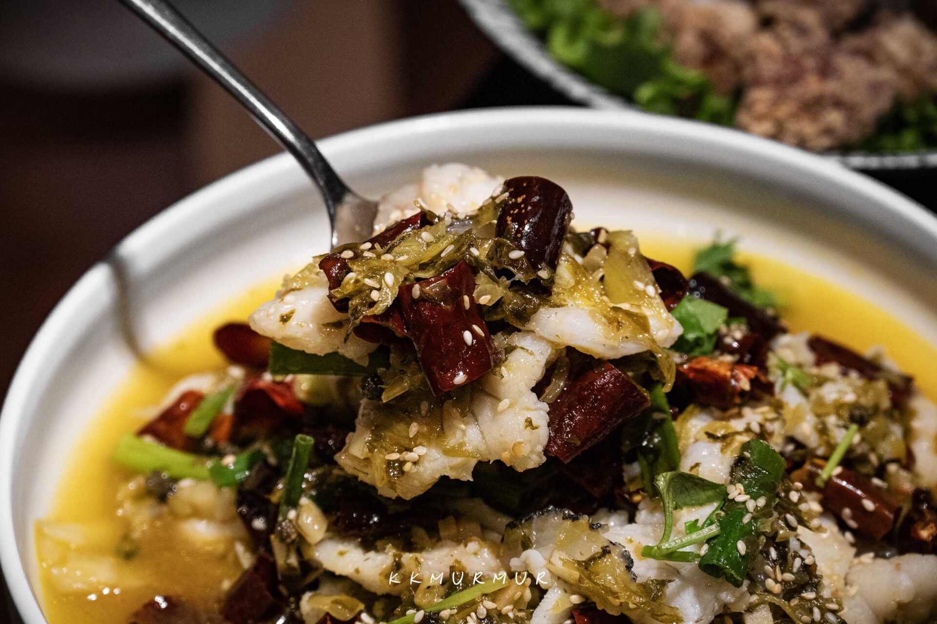 【藤椒酸菜龍膽石斑】我很喜歡欸,有別於許多酸菜魚是選用鱧魚、海鱺或鱸魚來製作,這品揀選了龍膽石斑來入菜,魚肉飽滿有彈性、魚皮Q彈並富含膠質,雅緻的酸菜氣息很適口而不會過於強烈,尾韻會帶出鮮明的藤椒香氣,但也不會感到燥口或太過搶戲,整體搭配起來的滋味,就是非常的順而討喜,即便單吃也不會覺得太強烈,配飯更是非常稱職的白飯小偷。