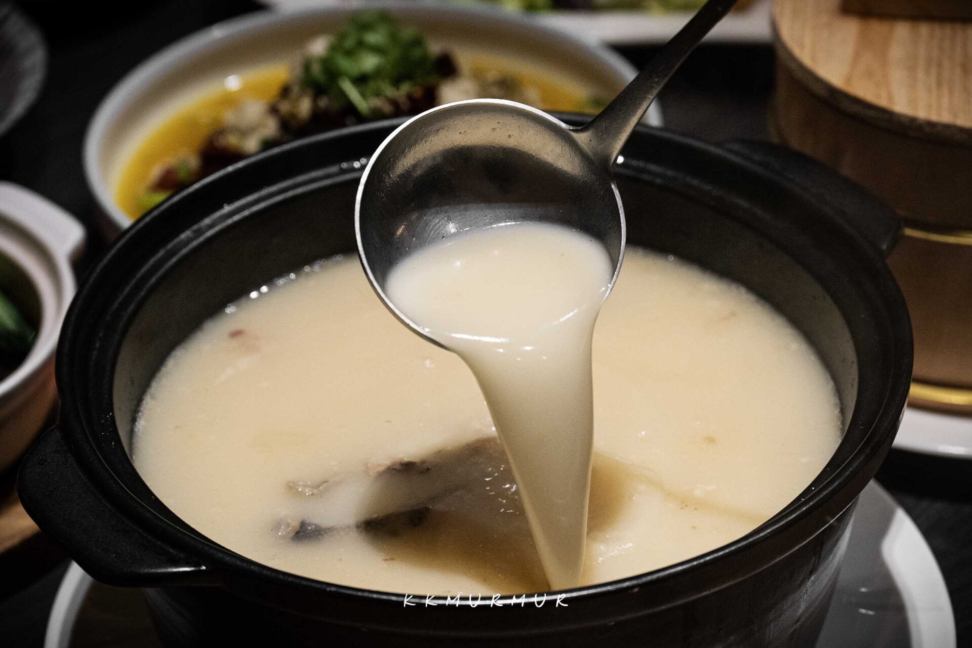 【一品砂鍋雞湯】這鍋我超愛,那乳白色的湯頭看就知道不得了。特別揀選了小土雞,並加入豬腳、干貝等山海珍貨來細火慢熬,讓湯喝起來鮮美至極,香氣逼人但不會過於濃郁或強烈,滋味濃醇帶點膠質,並兼具著溫潤的風味屬性,容易讓人忍不住一直拿來喝,因為實在是太鮮又太順了。而雞肉部分,主廚費工費時將「湯」與「肉」分開處理,因此這鍋中的小土雞,肉質軟嫩而絲毫不會感到乾柴韌口,厲害!