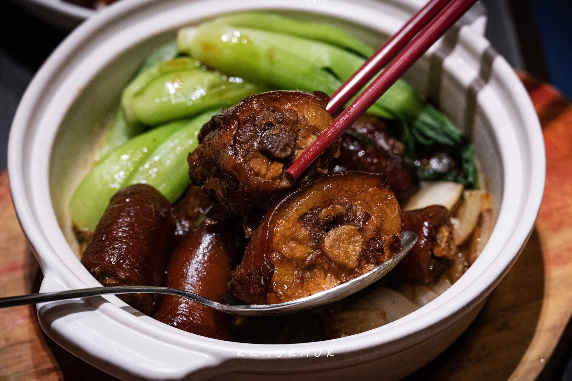 比較少見且有特色的【紅麴豬尾煲】也是很讚,外皮Q彈有勁兼顧著適口咀嚼感,大口咬下內裡的肉更是軟嫩又十足入味。入口後隨著每一下咀嚼,那豐富的膠質實在讓人很對味又療癒。醬香濃醇郁口,交織著紅麴淡雅的甘醇甜香,底下鋪墊著的洋蔥,在飽吸精華醬汁後亦是相當的好吃,喜歡!