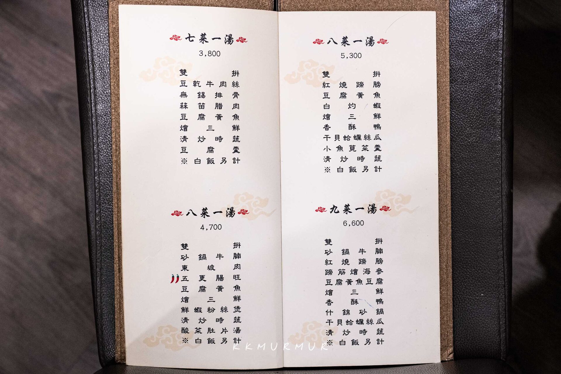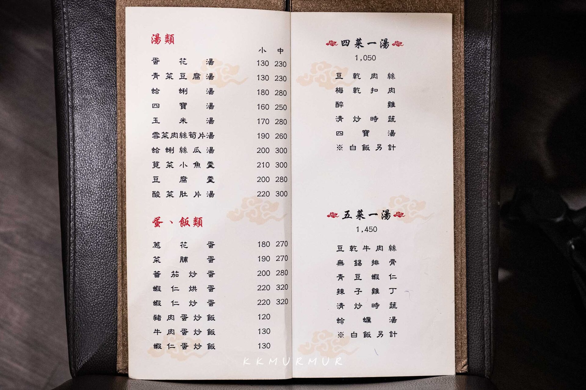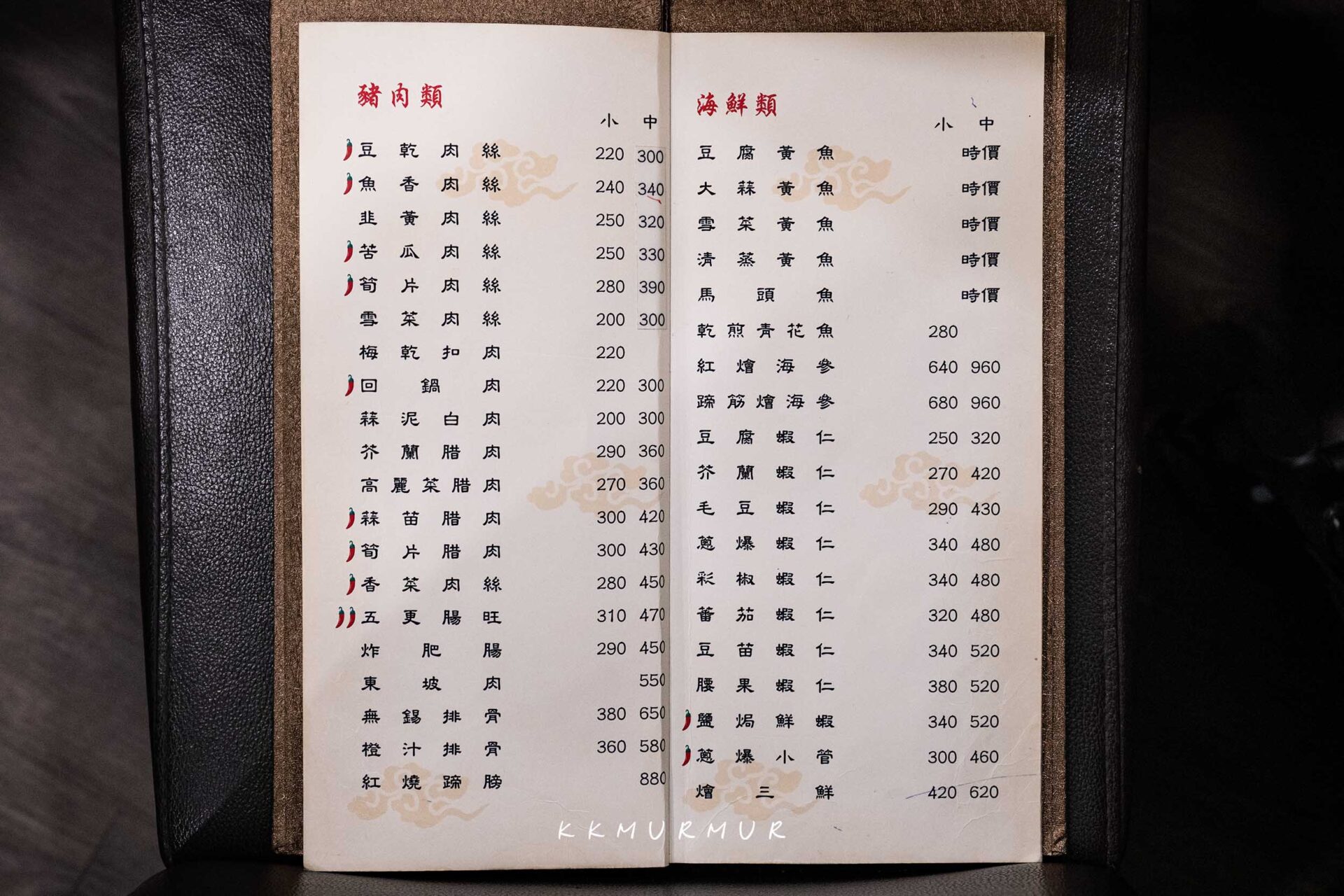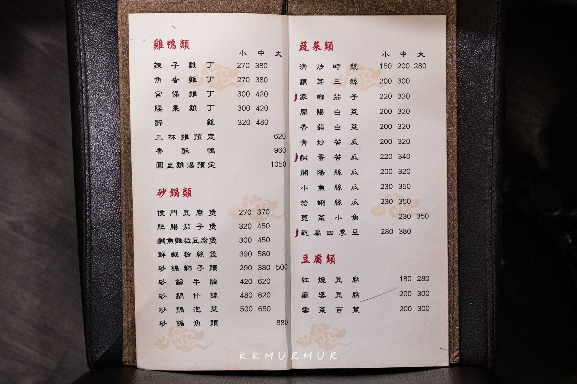 【侯門小館】的菜單如上,主打各種中式合菜桌菜,從肉類料理、海鮮、砂鍋/湯品、蔬菜/豆腐到飯類主食都一應俱全,許多菜色都有芬小中大的尺寸,3-5人可以點小份、6-10人則建議中份為主!