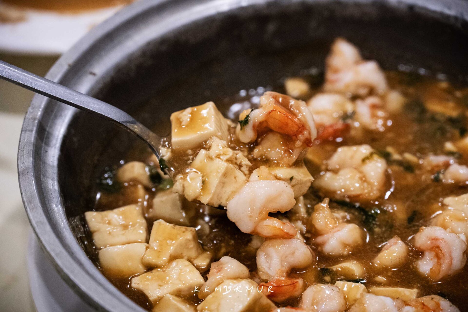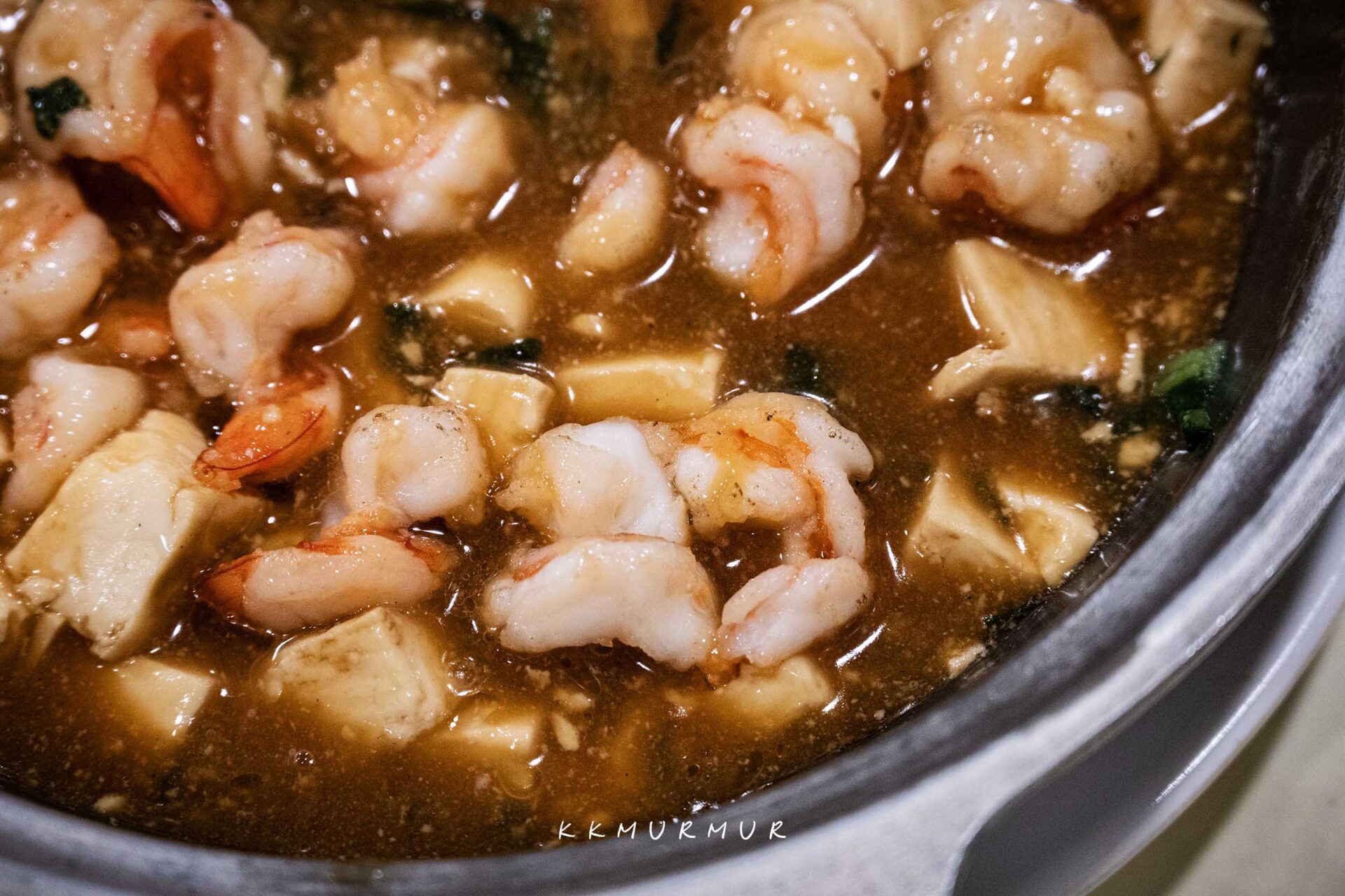 【侯門豆腐煲】濕潤感較強烈,豆腐切至小方塊狀,質地滑嫩很順口,搭著蝦仁等海鮮一起品嘗,口味是滿家常又下飯,但整體相對前面菜色,覺得較為中規中矩,未來再訪應不會再點。