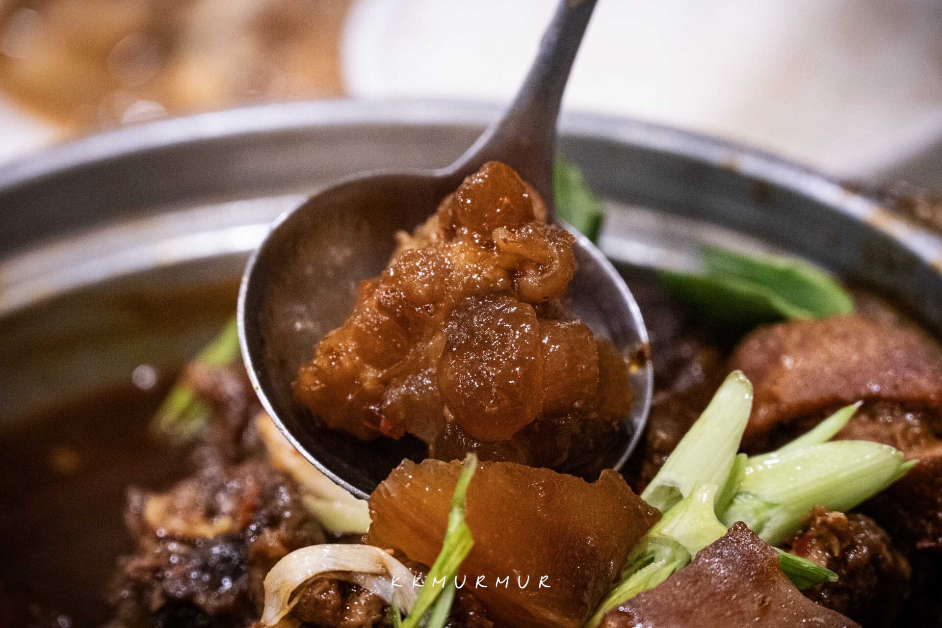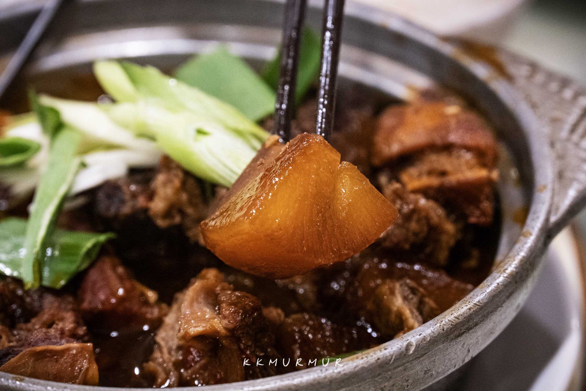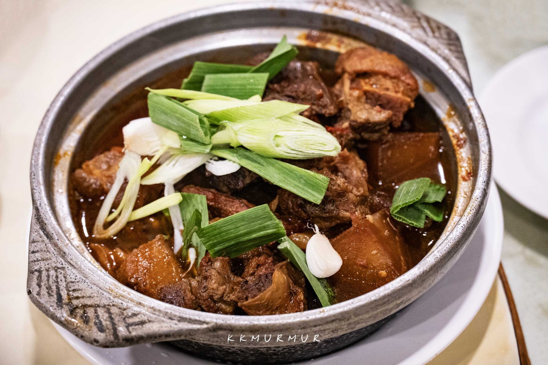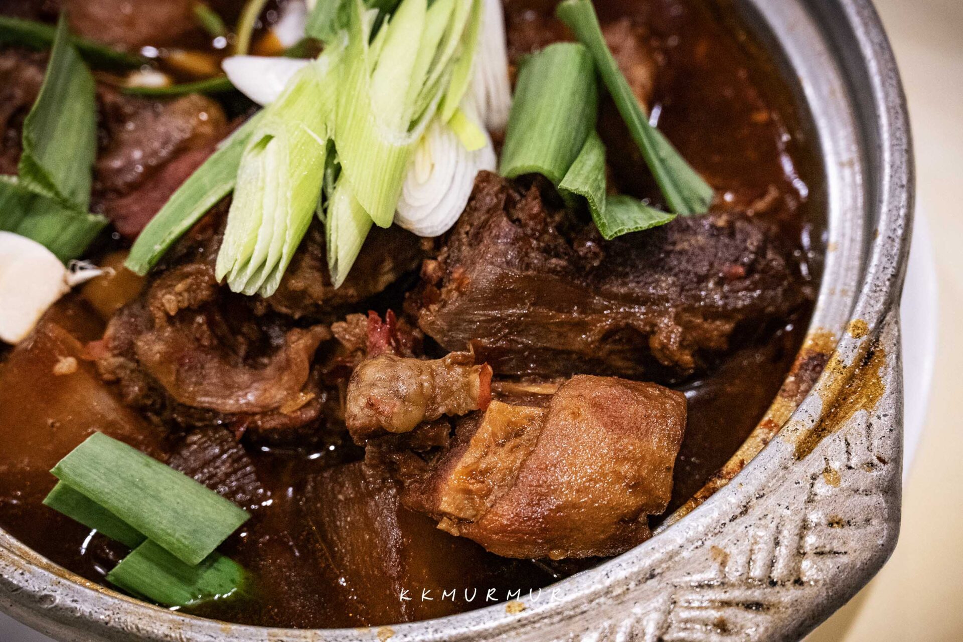 因為我們人多,所以【砂鍋牛腩】點中份的,結果還真的滿大鍋。裡面有牛腩、牛筋與蘿蔔,給的量都很足、也滷得滿透挺入味。
