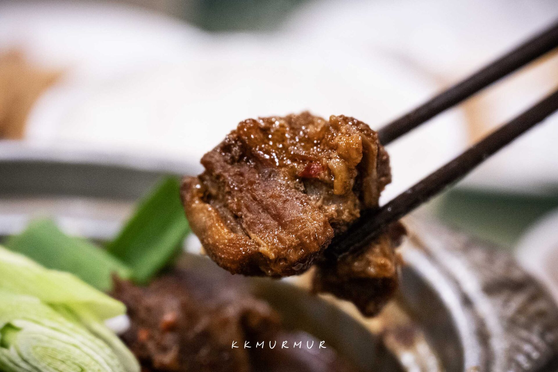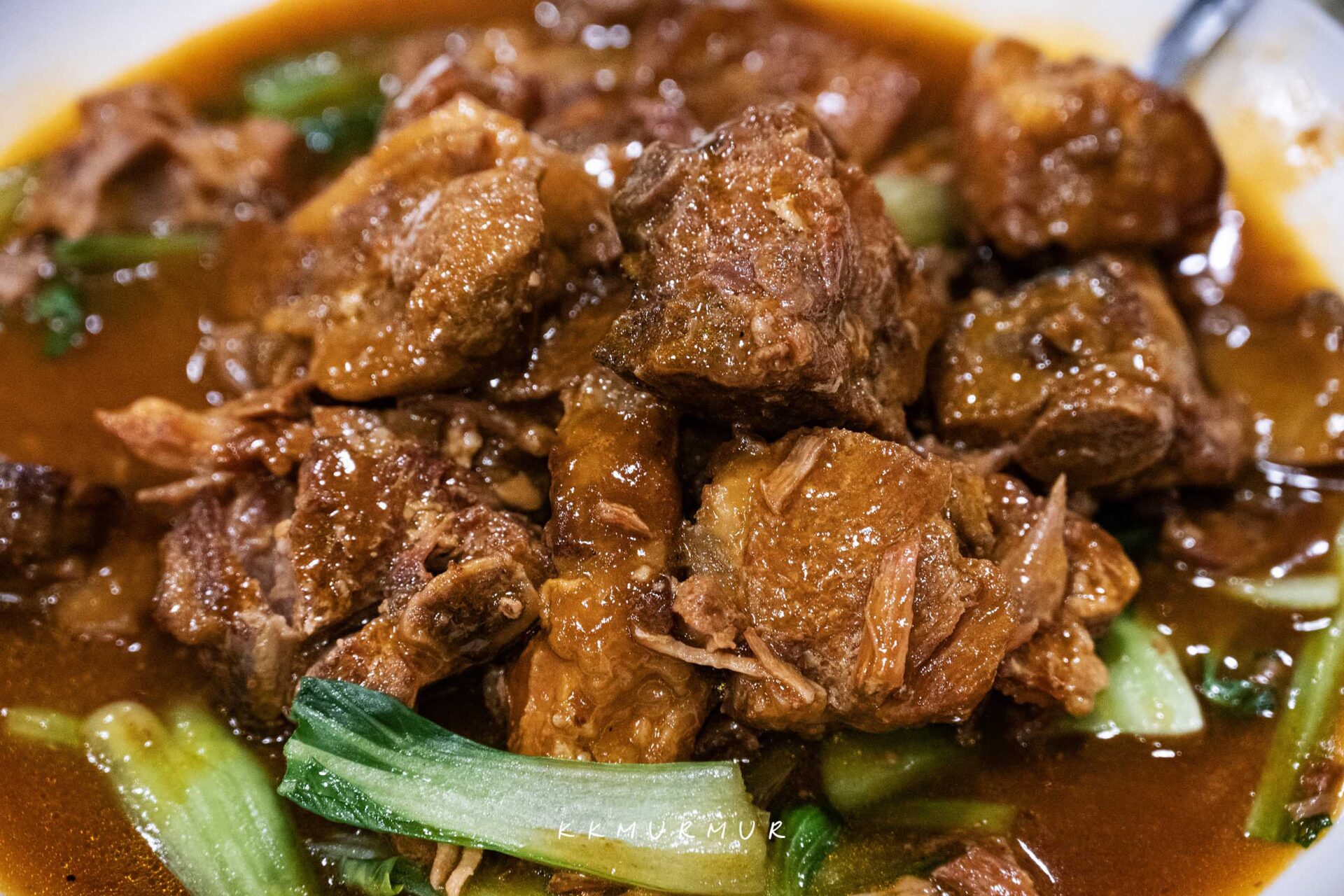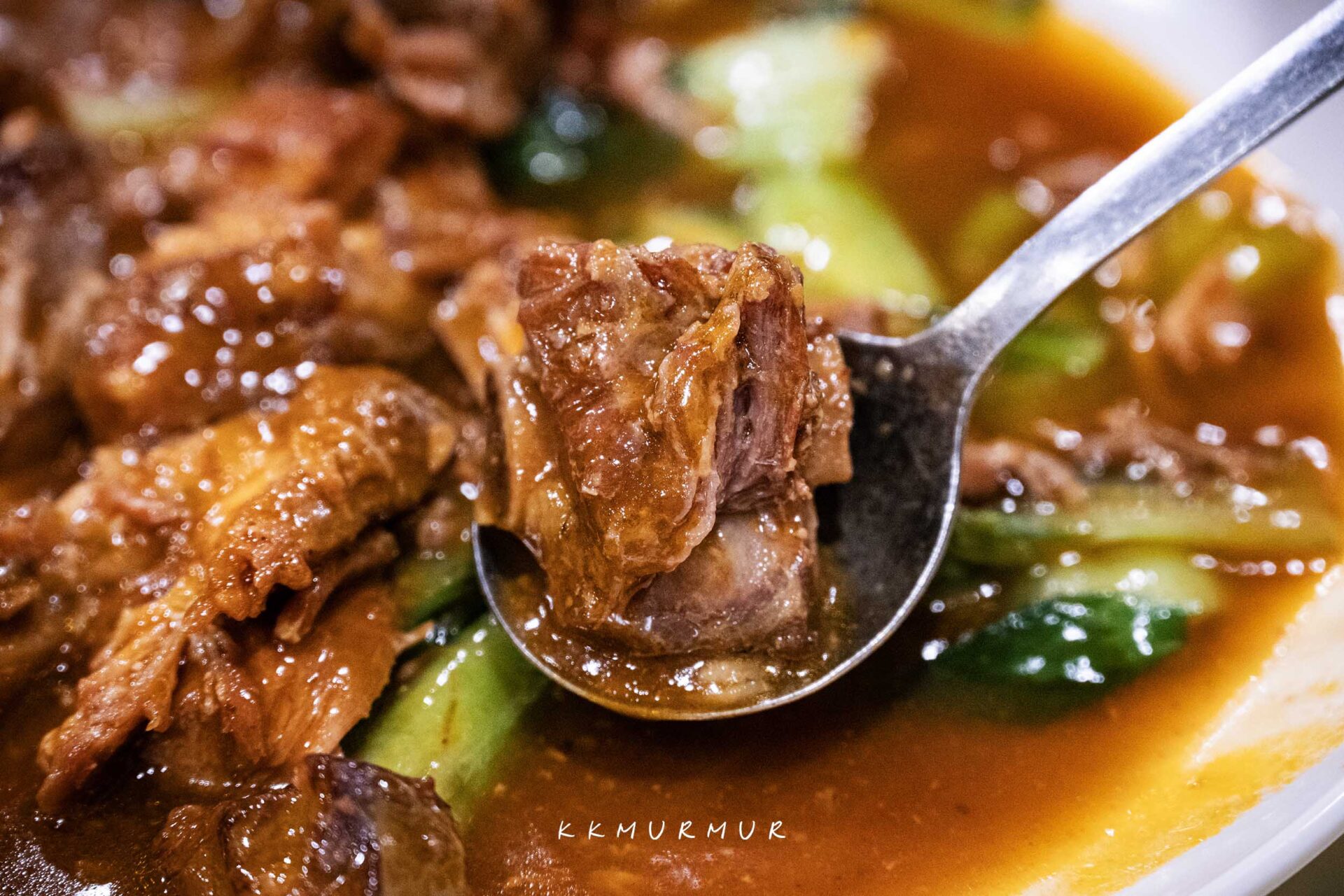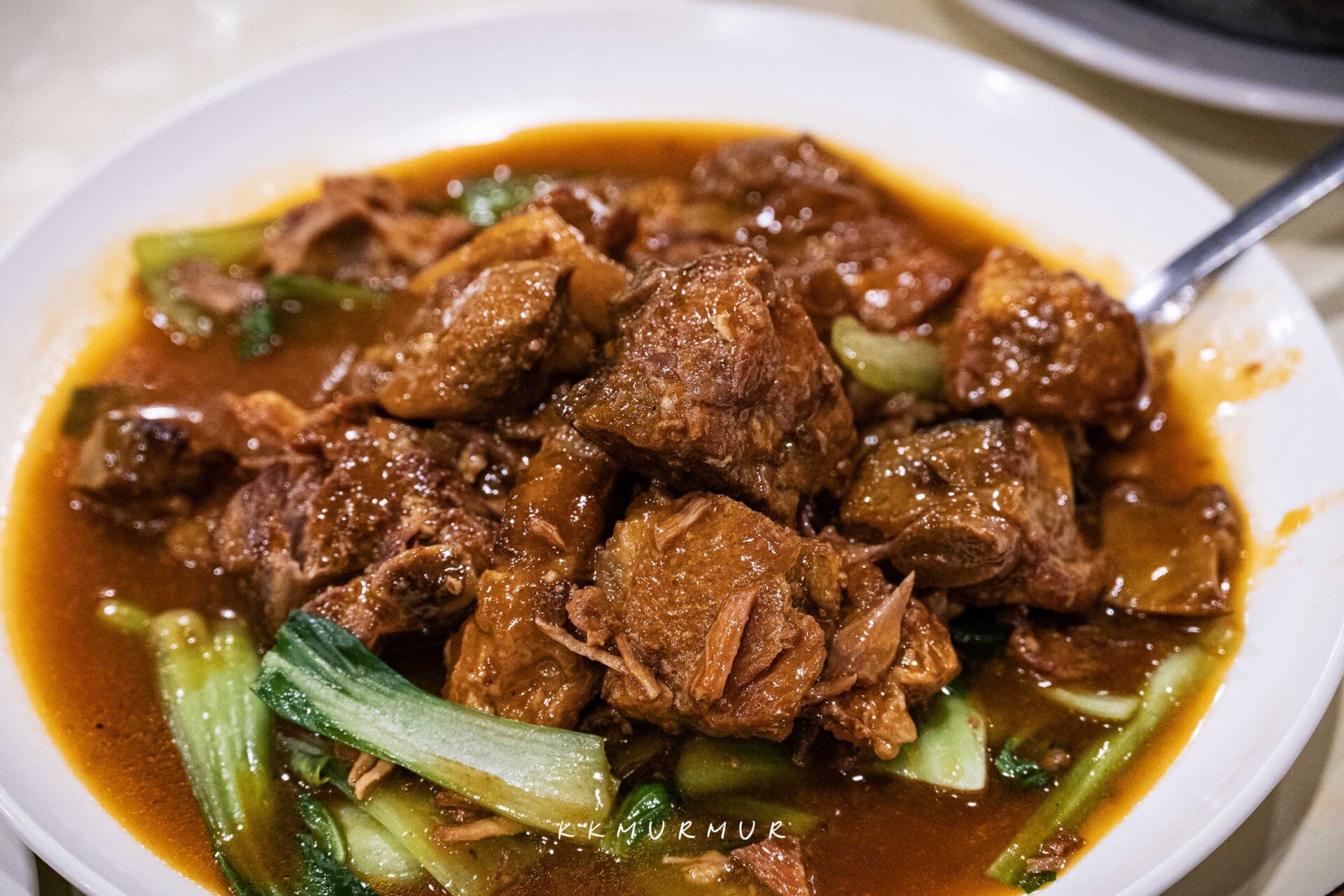 因為我們人多,所以【砂鍋牛腩】點中份的,結果還真的滿大鍋。裡面有牛腩、牛筋與蘿蔔,給的量都很足、也滷得滿透挺入味。