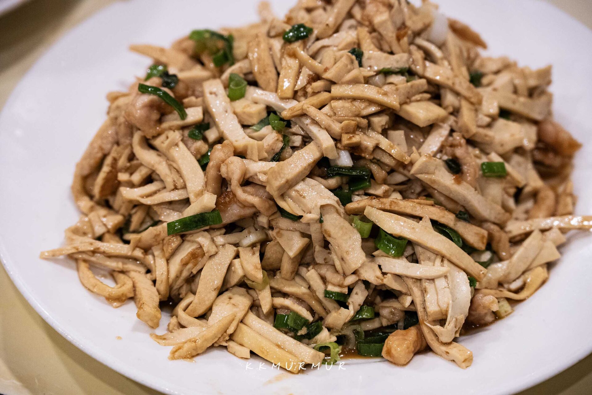 【豆乾肉絲】是這裡的招牌菜色,被許多網友評為心中第一的存在。豆干絲非常的水嫩且滑順,肉絲鹹香又軟嫩,鍋氣我覺得不算太鮮明,但整體搭配起來滿下飯的,是有水準的一品佳餚,但我個人會更偏好六品小館的豆乾肉絲,覺得香氣更雅緻、鍋氣也更迷人!