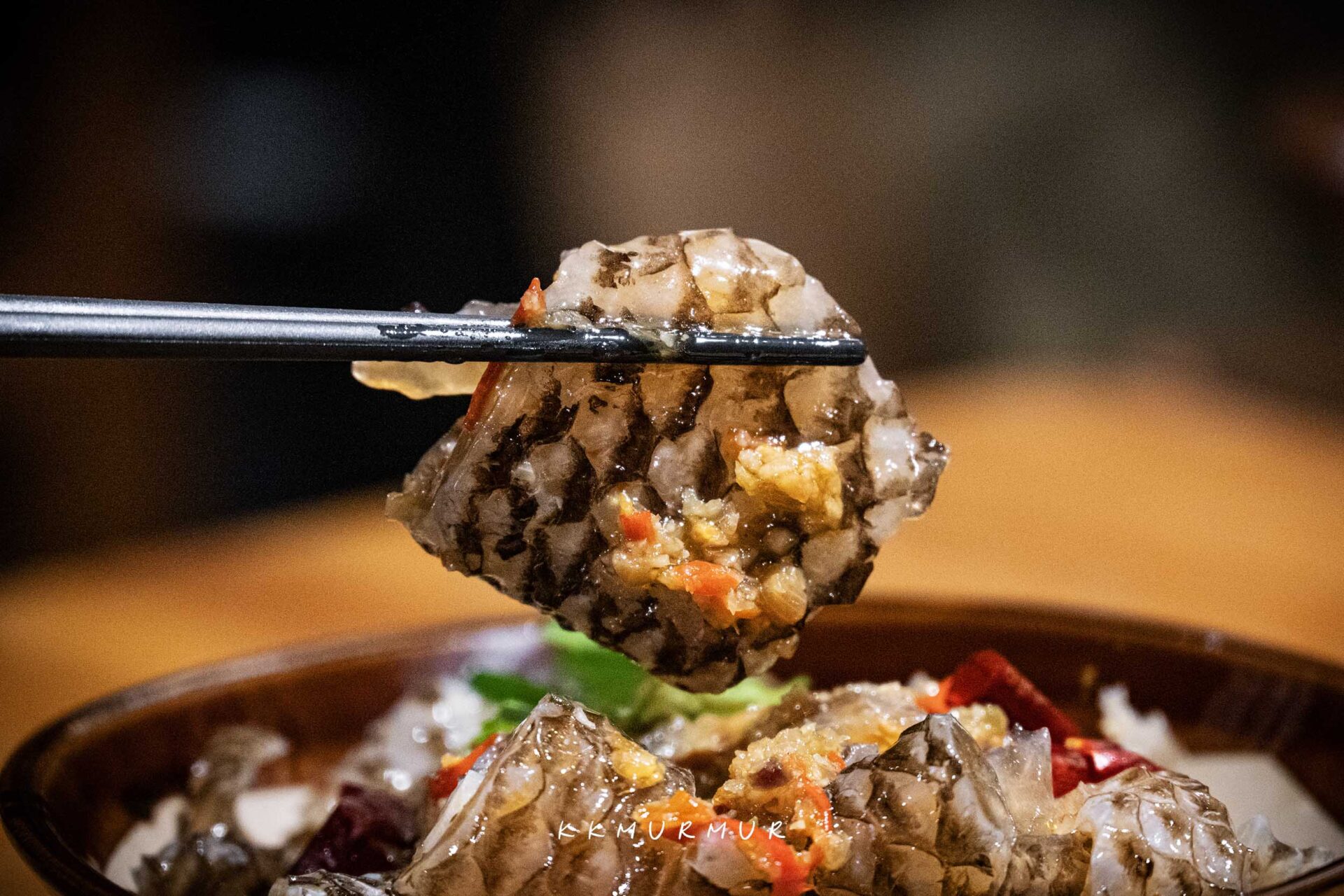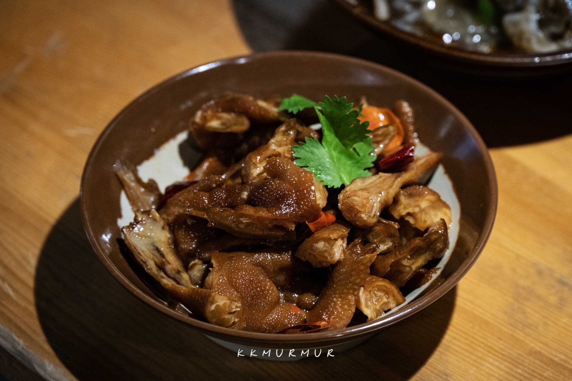 【銷魂鳳爪】很細心的有去骨處理,吃起來就是相當的過癮。飽滿Q彈的口感中帶有著迷人膠質,醇郁中交織著微微香辣與辛香,做為開胃前菜非常的讚、十分涮嘴,也因為去骨的緣故,容易讓人一口接一口的品嘗!