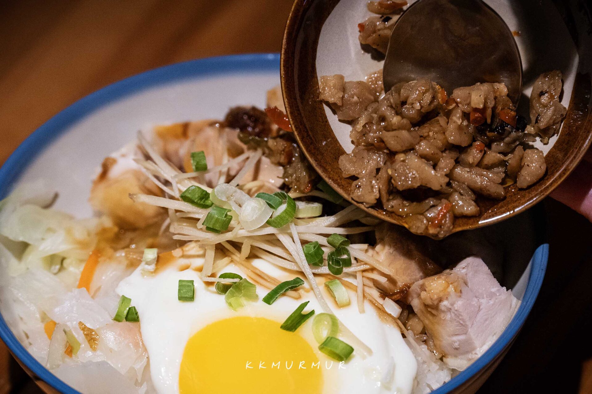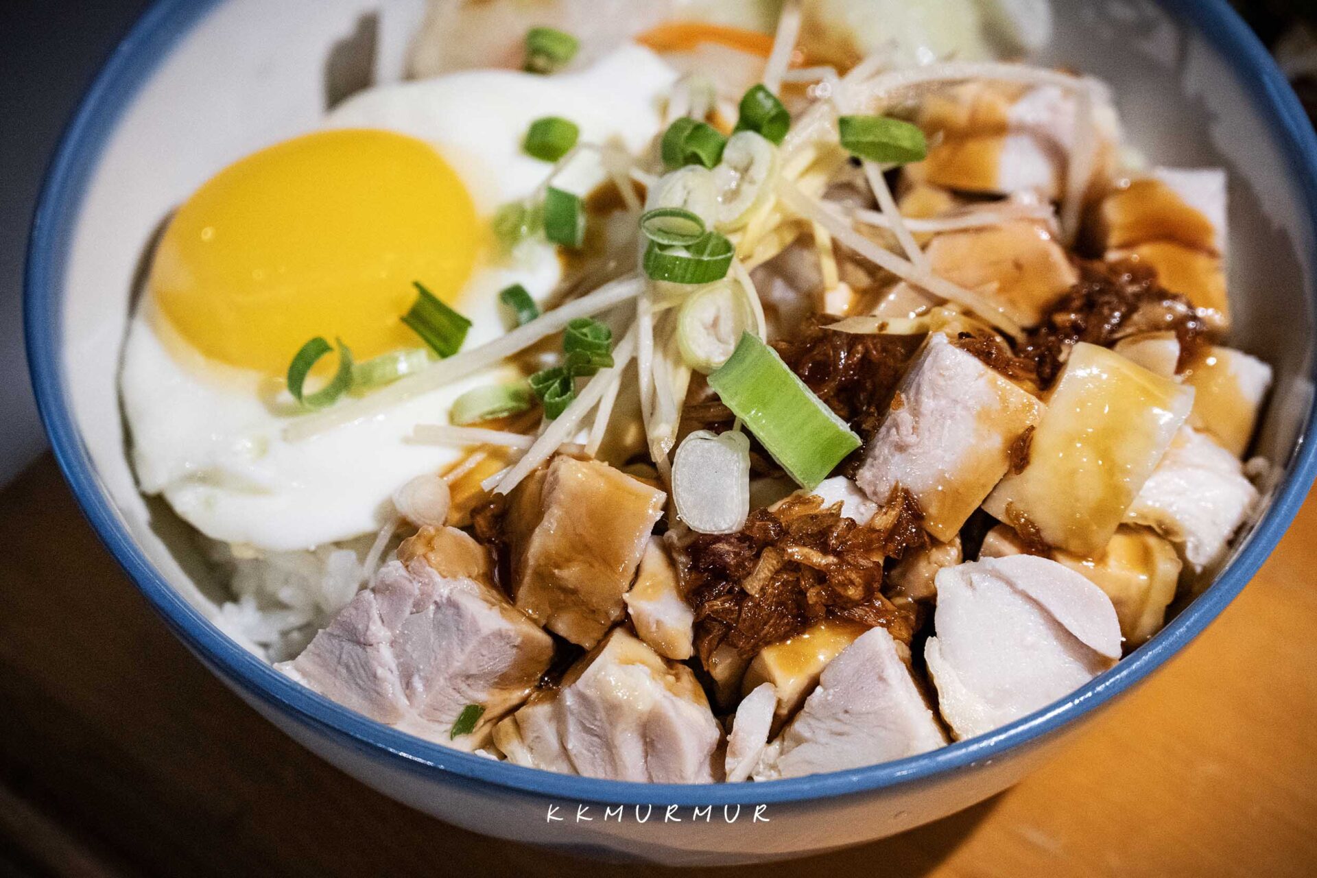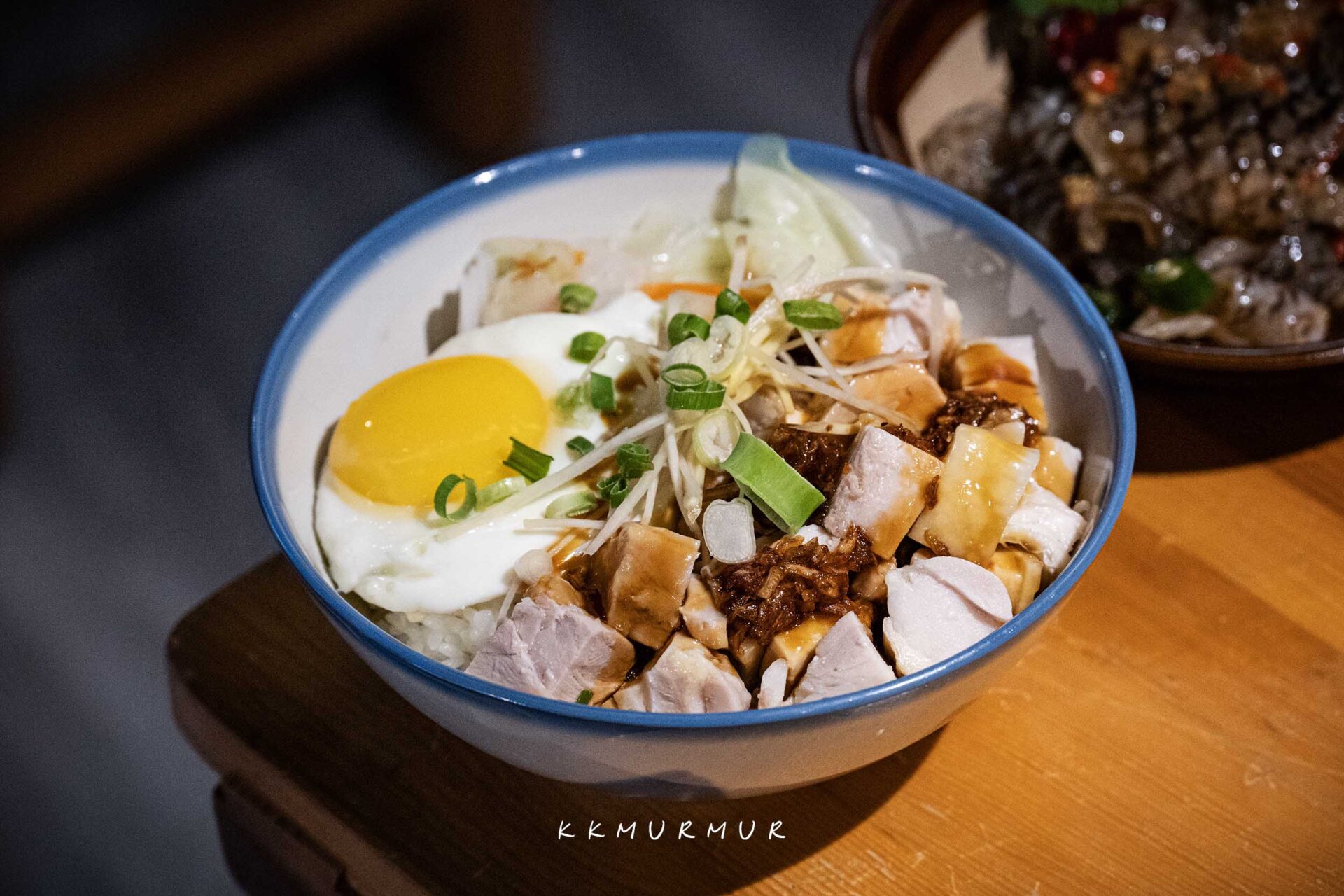 【新加坡蔥薑雞飯】也是很不錯,光這份量搭這價格,就屬非常的佛心有誠意。雞腿肉軟嫩適口又有彈性,隨著每下咀嚼,肉汁與肉香逐漸滿溢口中,搭配上方鋪墊著的蔥薑醬,層次體驗更為拉升,配著白飯與半熟蛋,絕配!