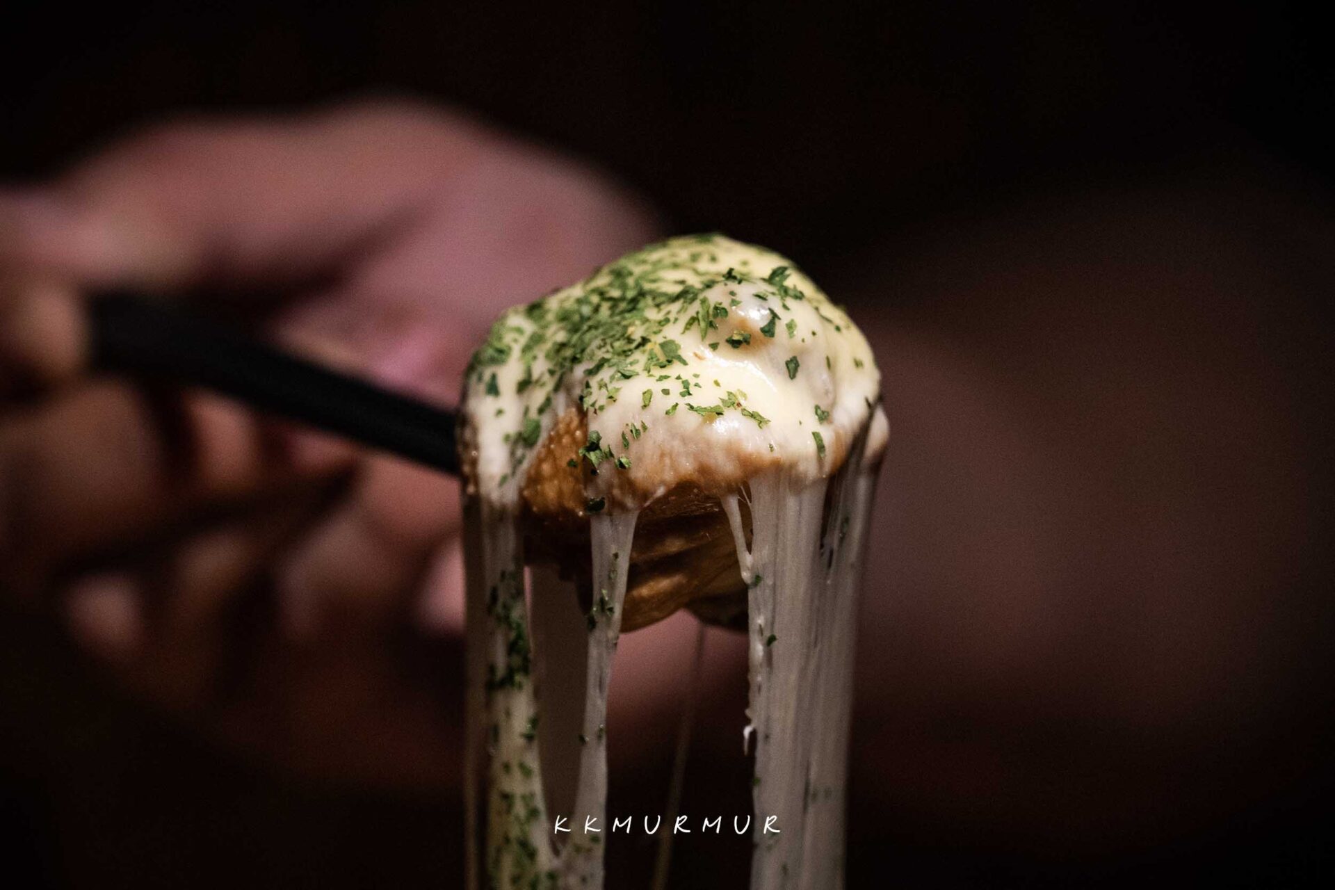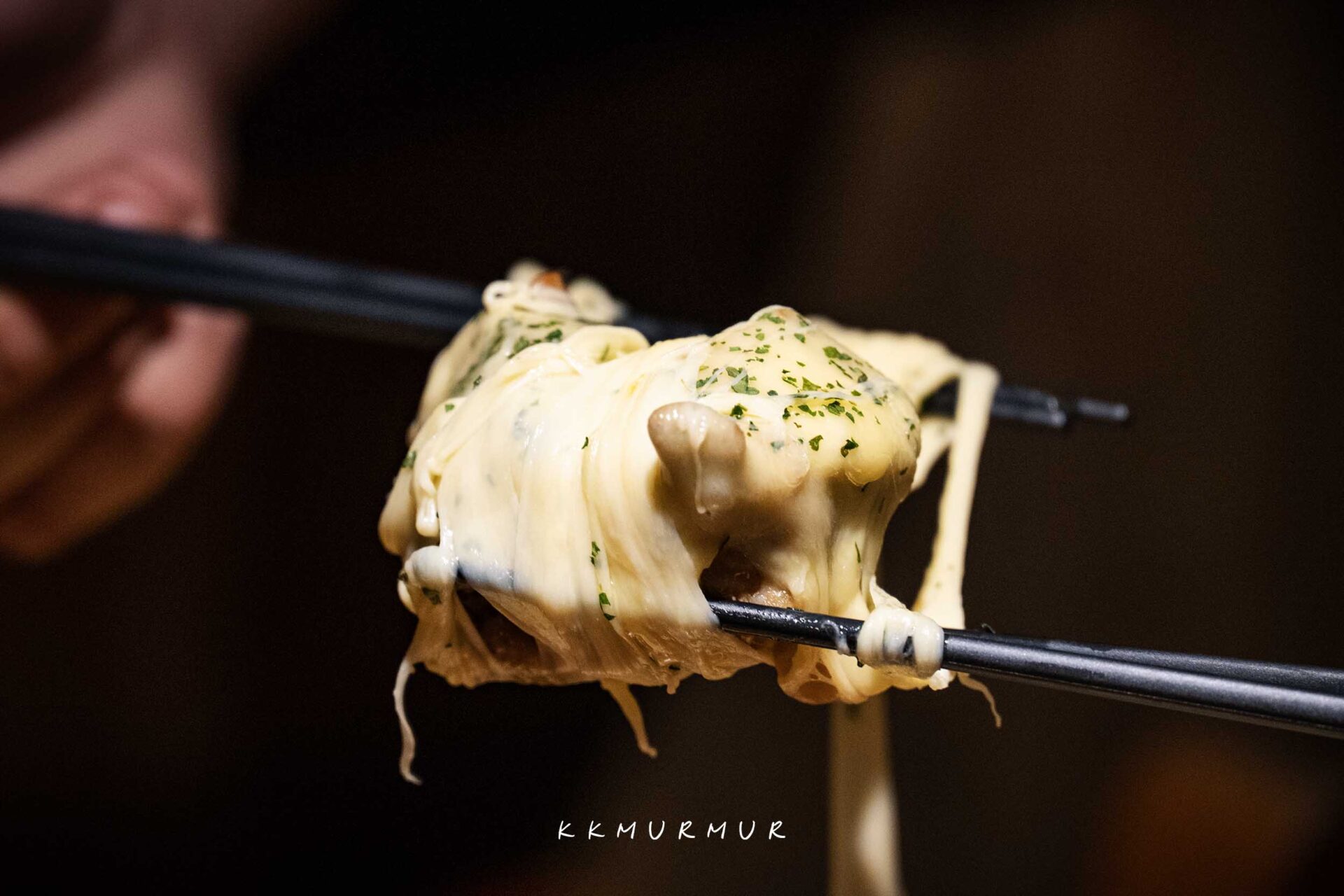以切達與莫札瑞拉兩種起司製作而成的起司瀑布,大量的滿蓋在青花椒雞肉上,那牽絲的狀態直接拉出一個新高度,香濃醇郁、鮮美又欠吃。