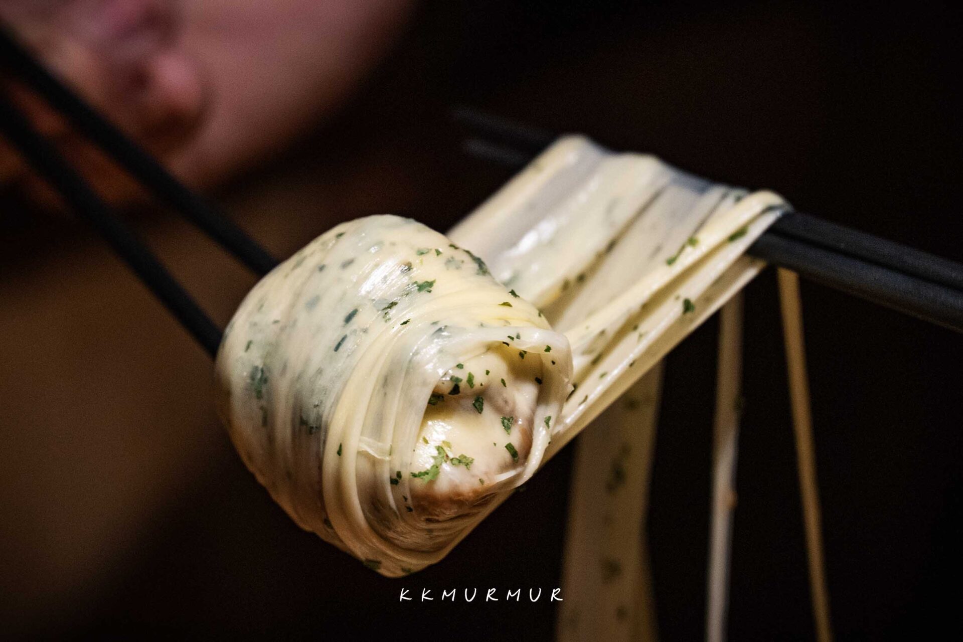 青花椒雞肉軟嫩中帶彈性,香麻微辣交織適口醬香,本身就相當的優秀,再將牽絲起司捲起包覆住雞肉,尬在一起大口咬下超滿足,那濃郁至極的香醇滋味,與青花椒的獨有香氣相互提襯,非常之讓人感到爽快!