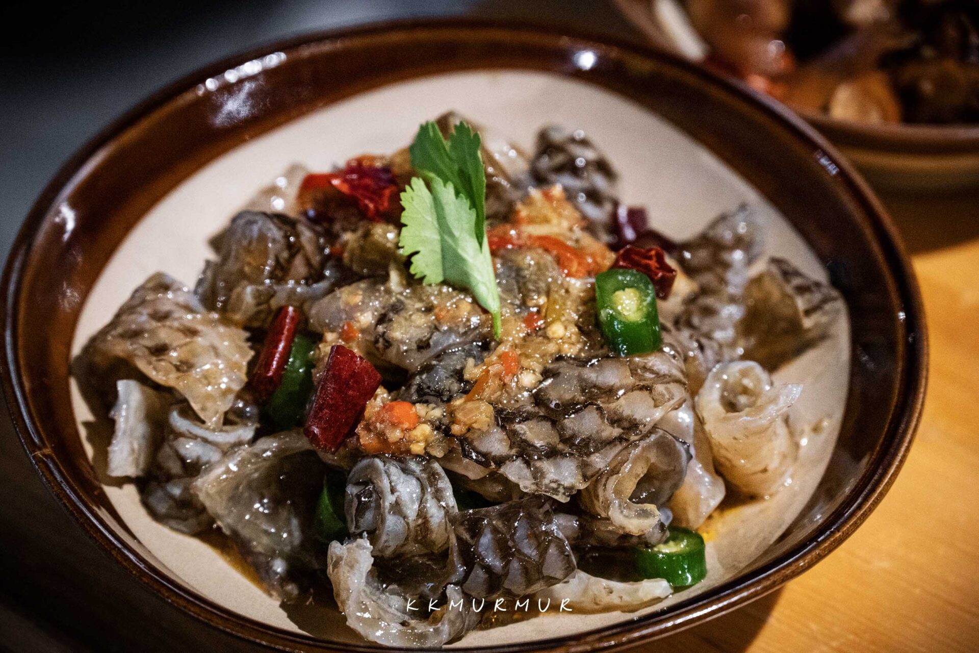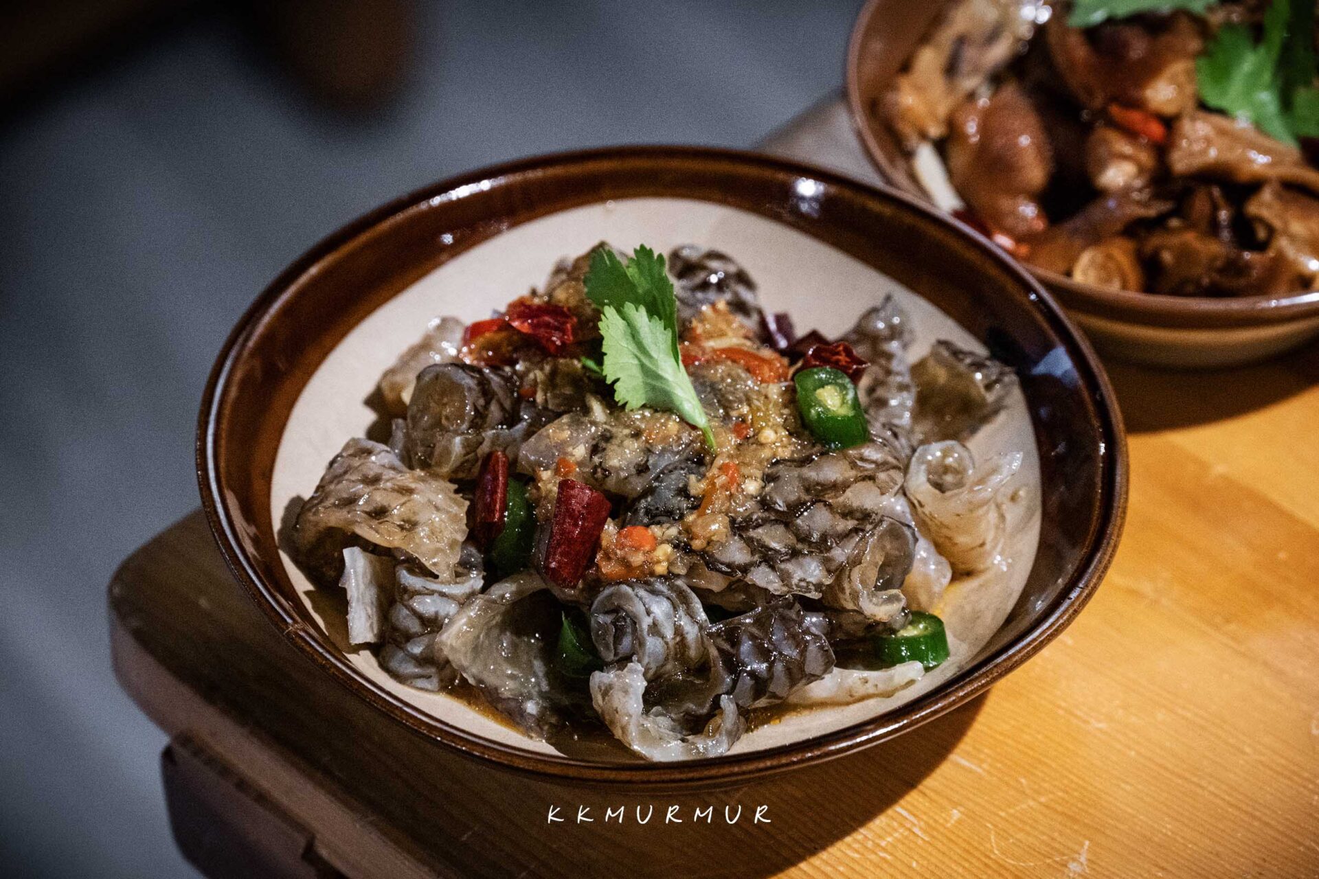 【麻辣涼拌魚皮】滑溜順口,吃起來Q中帶有著不錯的咀嚼感,麻辣的程度拿捏得宜,香辣開胃但不會太過厚重或燥口,作為前菜也是相當的推薦!