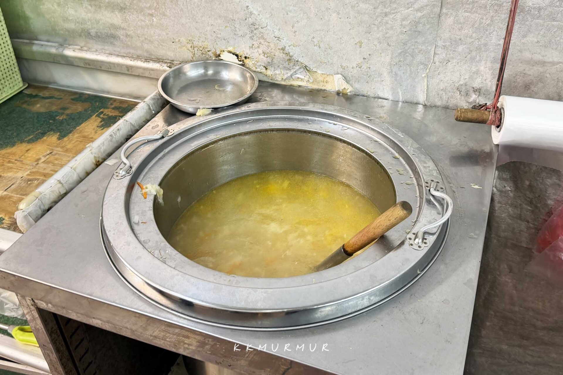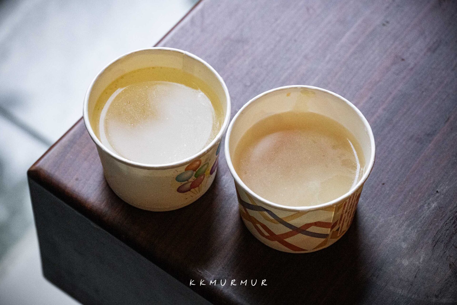 【例湯】是免費自行取用的,口味其實滿淡,有時候甚至會給我一種非常清、像喝水的感覺,不會特別推薦一定要喝,但作為飯後解膩是OK的,且願意免費提供例湯,也是佛心啦!