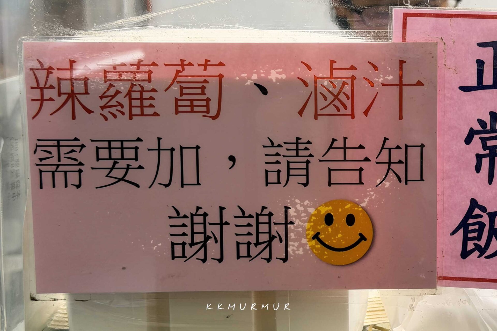 【金頂便當】有免費例湯可以拿取,點餐時服務人員也會詢問要不要添加辣蘿蔔與滷汁哦!