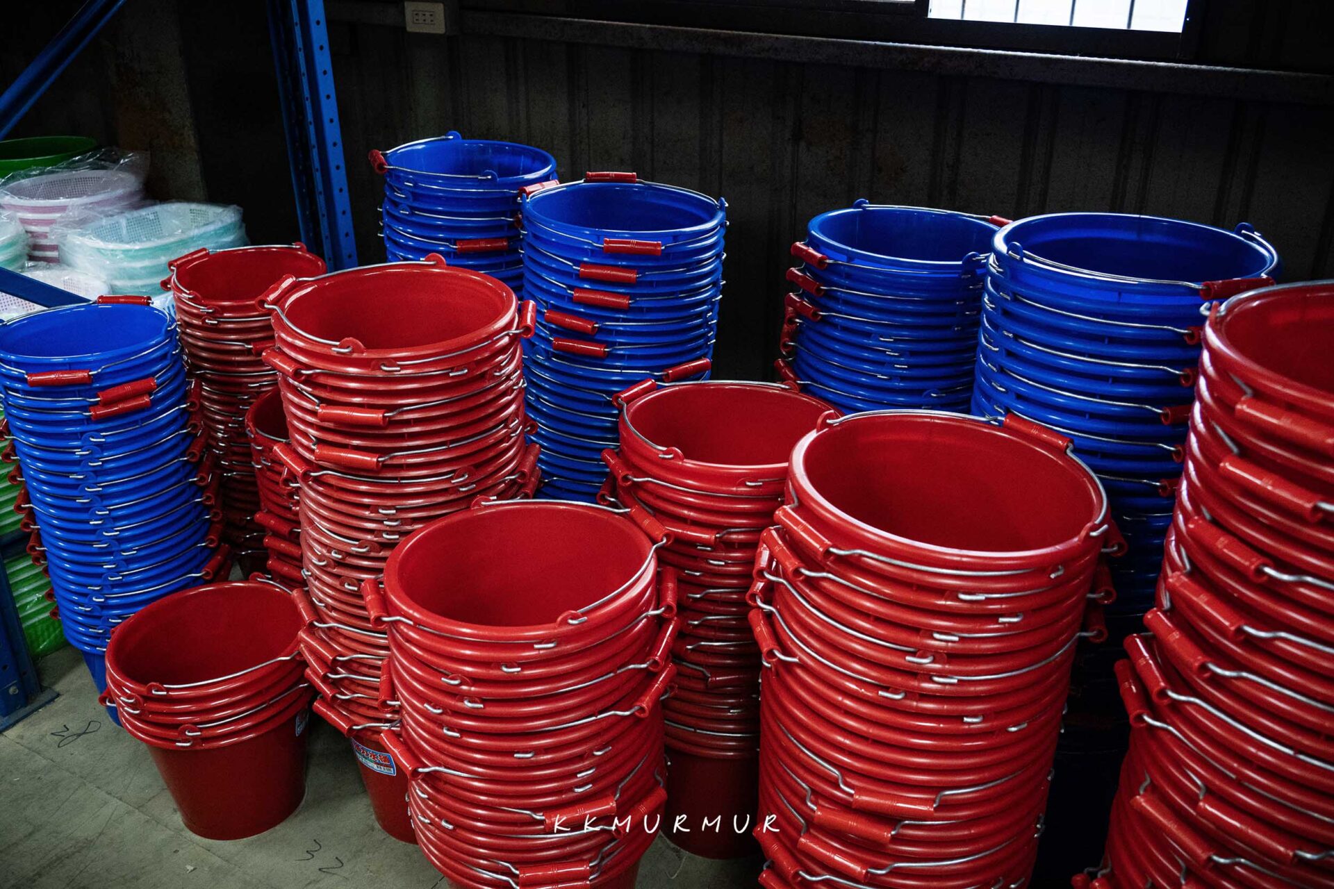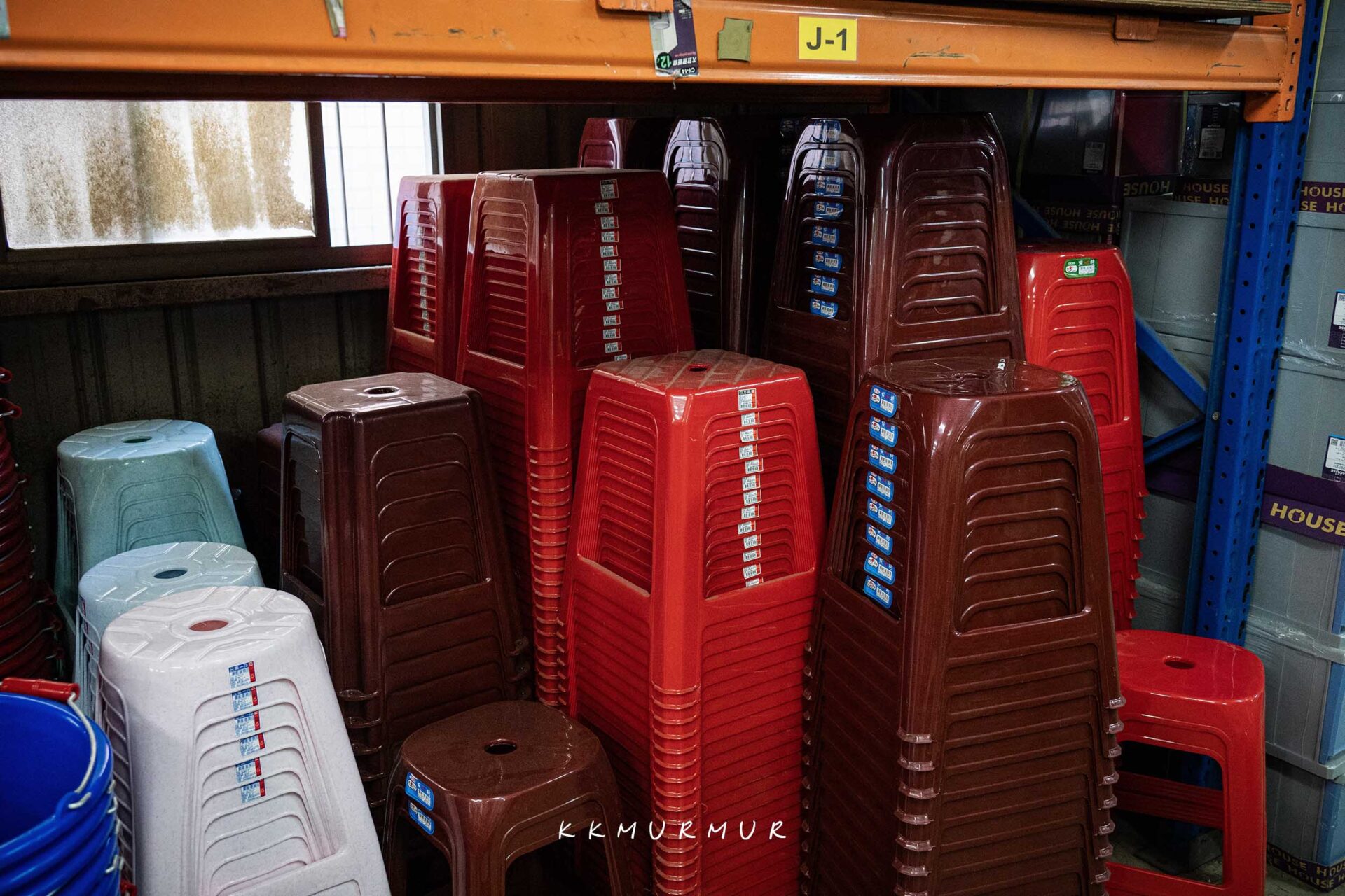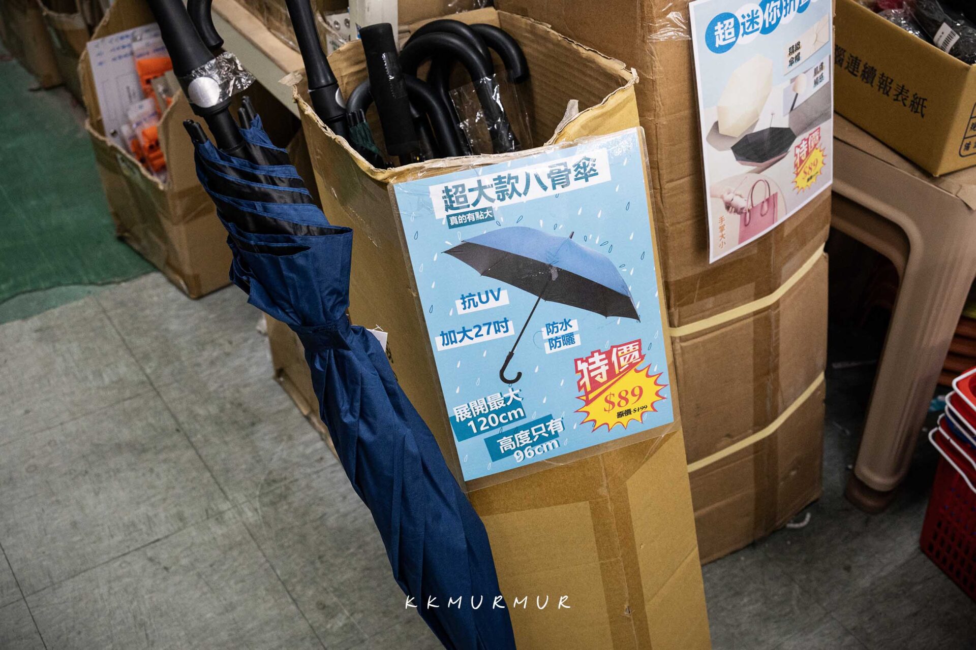 塑膠水桶、凳子與雨傘這裡也都有,大量採購也絲毫不心痛。