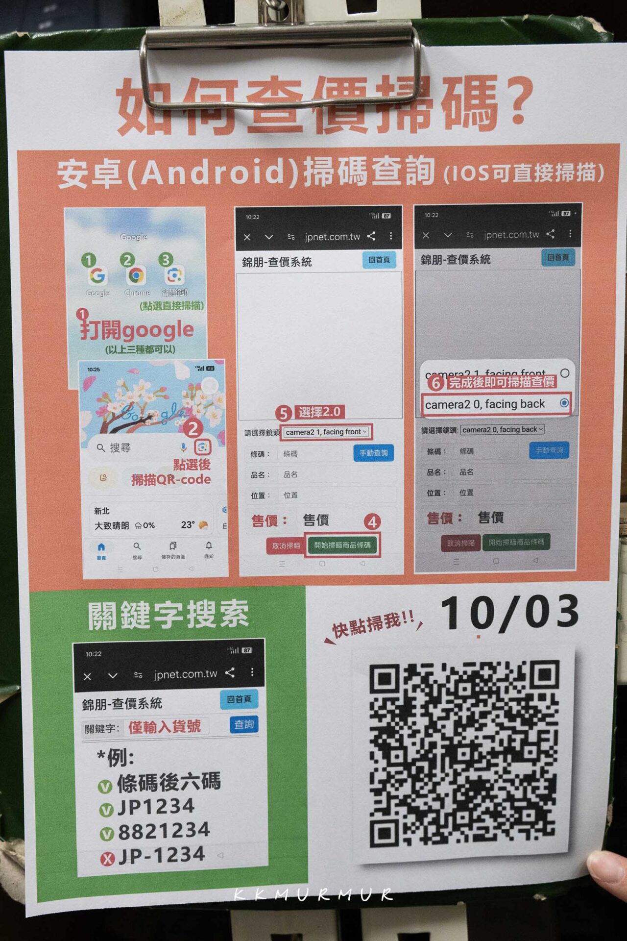 【錦朋禮品生活百貨】的商品定價,普遍落在市面上原價的7-9折,有些商品會低上更多。然因品項頻繁進出更新,因此商品沒有特別標示售價,如想知道商品的價格,可以透過掃碼的方式查價,操作上很簡單,也不用額外加會員,店內的各個角落也都有貼上操作說明,照著做就可以輕鬆查價啦!