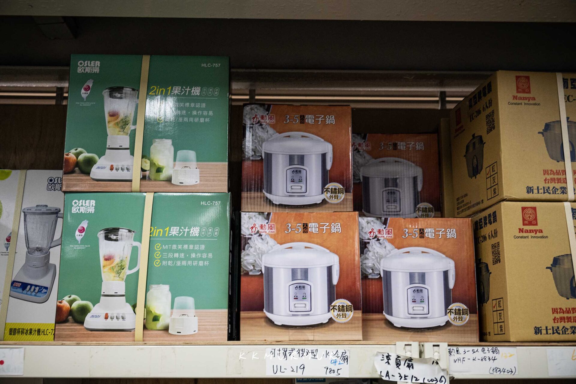 廚房小電器用品也很多,快煮壺、電子鍋、果汁機等等都可以在這裡找到,無論是自宅或是租屋外宿,都很推薦來這裡挖寶撿便宜。