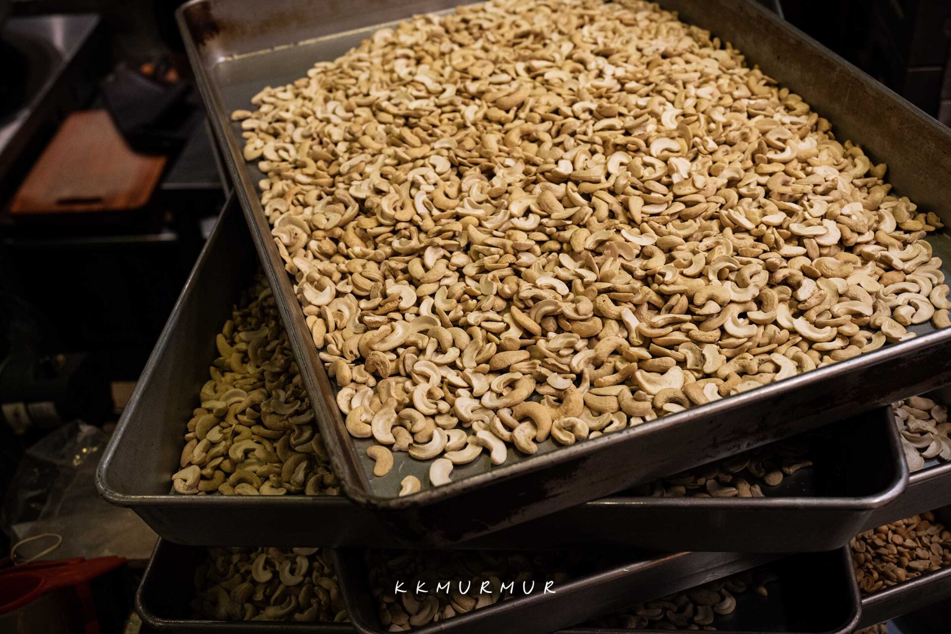 出爐後香氣噴發,師傅俐落的處理著腰果酥,聲響清脆過癮,看著就很療癒外,那香味真的是很誘人欠吃。
