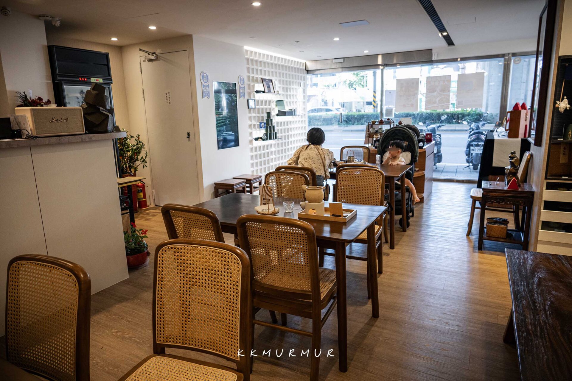 【澧瀜號 嚴選茶行/人文茶館】的用餐空間格局方正,淺色系木質調的地面,整體簡約乾淨,並帶點古色古香的氛圍。店內座位以2-4人的方桌為主,桌與桌之間的距離都留的很寬敞,整段用餐過程是很自在的。