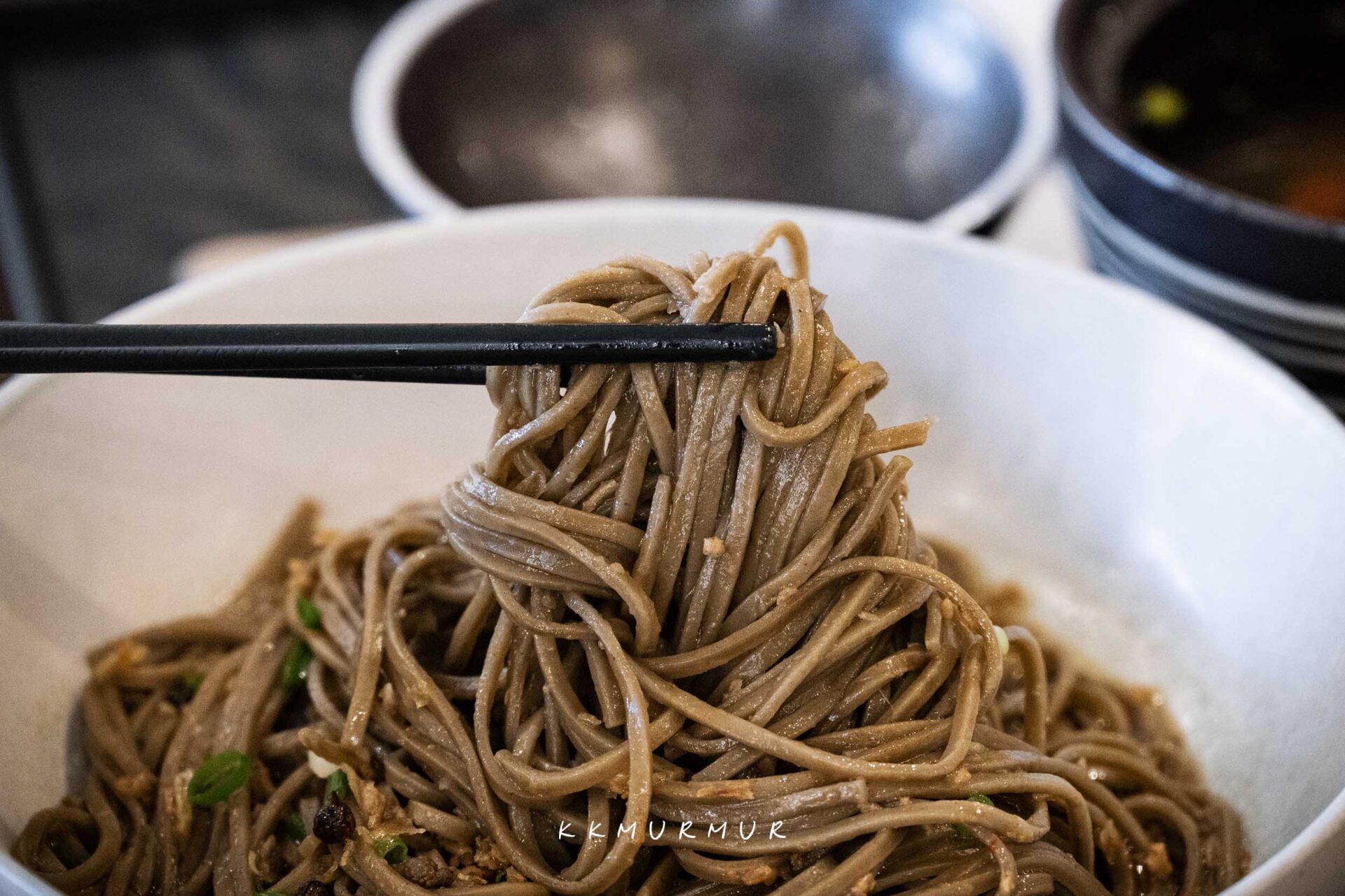 【秘製老滷烏龍茶拌麵】我也很喜歡欸,雅緻醬香帶著回甘滋味,有加入了茶油,因此從口感到香氣的層次都很豐滿,不用擔心口味太淡或沒味道,調味上拿捏得很適口,鹹香、醬香、茶香與微甜的風味屬性,搭著口感還不錯的麵體,整體是吃起來很讓人感到舒服的狀態,不會太厚重或感到燥口,覺得喜歡。