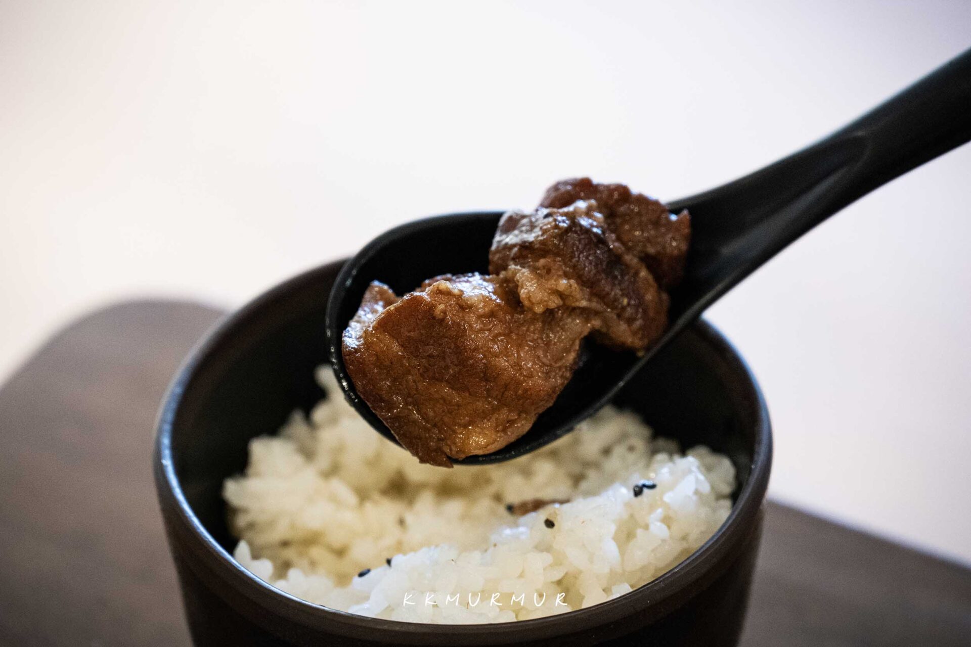 【私房紅燒肉】也是店內的人氣品項,除了點套餐外,也可以像我這樣單點一份來品嘗。肉質軟嫩中兼具了爽快的咀嚼肉感,肥肉部份油香逼人很對味,但也不會容易感到過於膩口。風味部分,醬香鮮明並帶點甜,鹹甜鹹甜的口味很討喜,難怪紅燒肉套餐一直是店內的人氣品項,整體是好吃且下飯的!