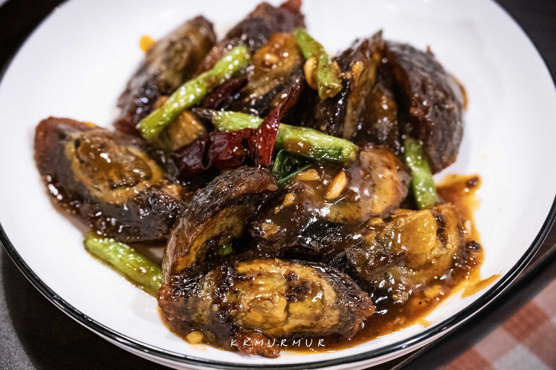 【四季皮蛋】上桌時跟原本想像的不太一樣,是走椒麻的風味路線,並且有著較鮮明的醬感。但吃起來出乎預料的好吃,皮蛋的香氣與獨有滋味,被椒麻帶點微辣的醬汁緊密包裹,整個非常的夠味,辛香開胃、稱職的白飯大盜。