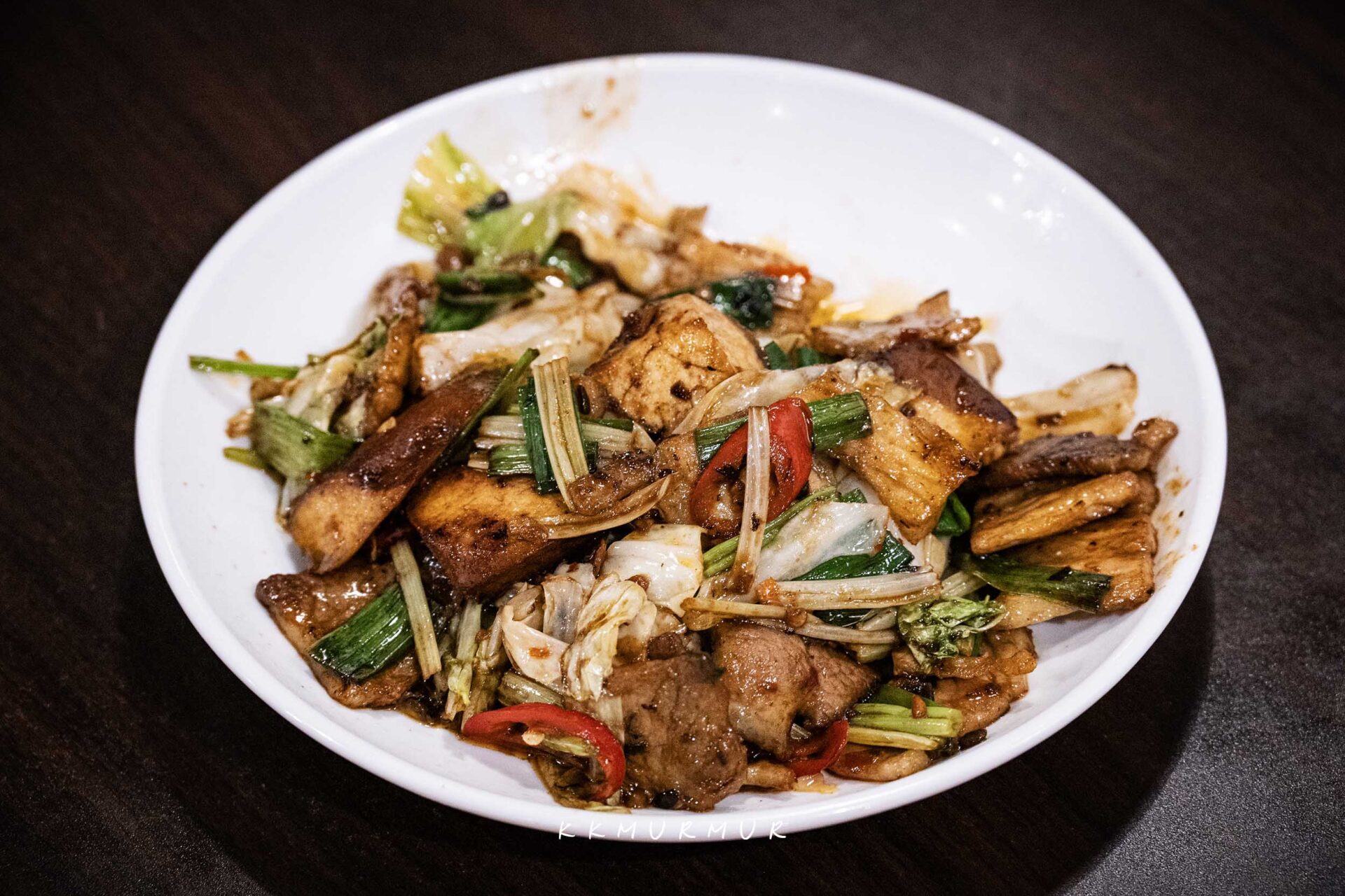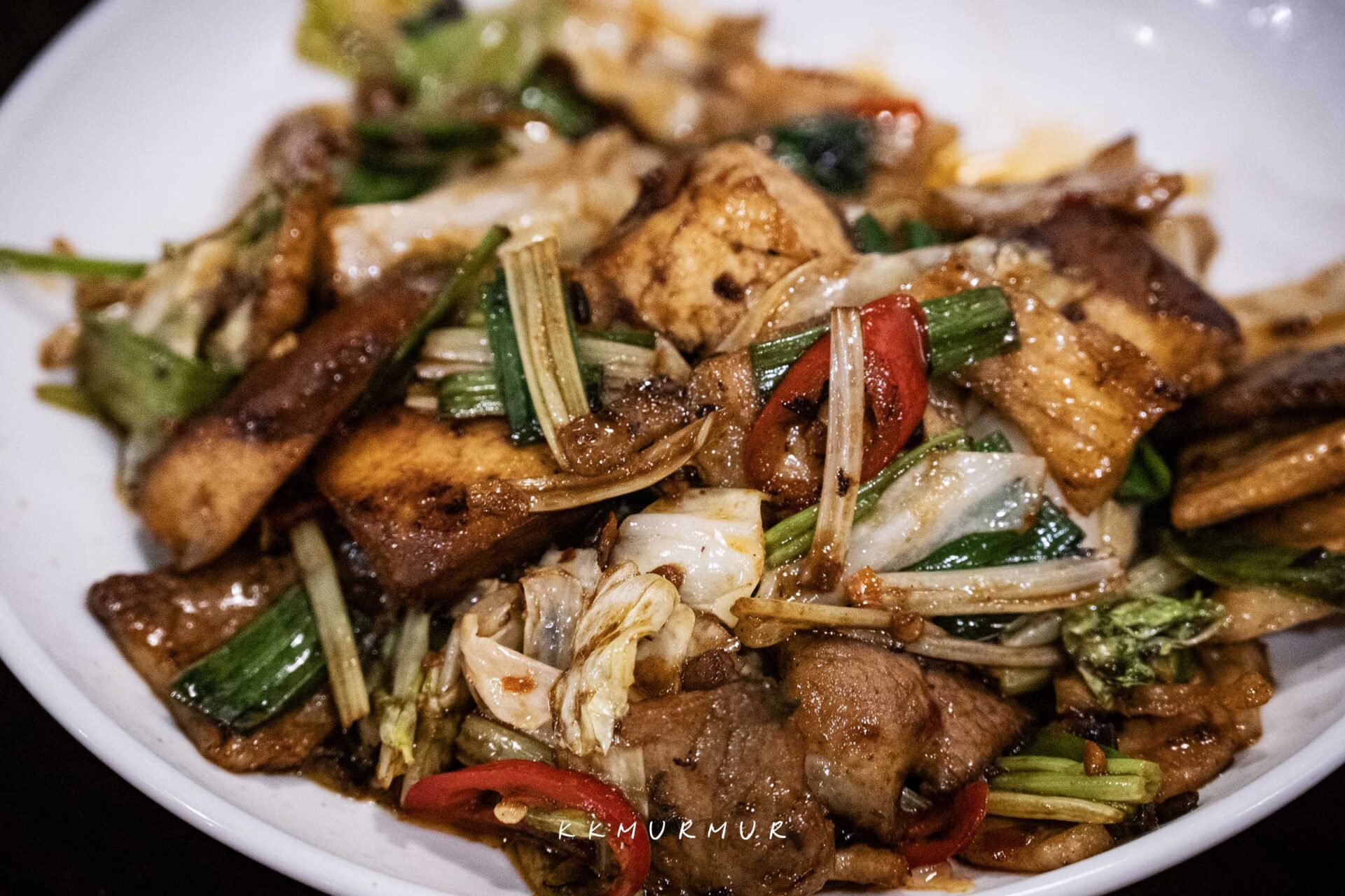 【回鍋肉】香氣還不錯,豆瓣醬香與鍋氣都很迷人且適口,三層肉、豆干與高麗菜整個都很入味、層次感也豐富,相當下飯。說到這品料理,必須順帶一推香而廉小館的回鍋肉,也是讚的啦!