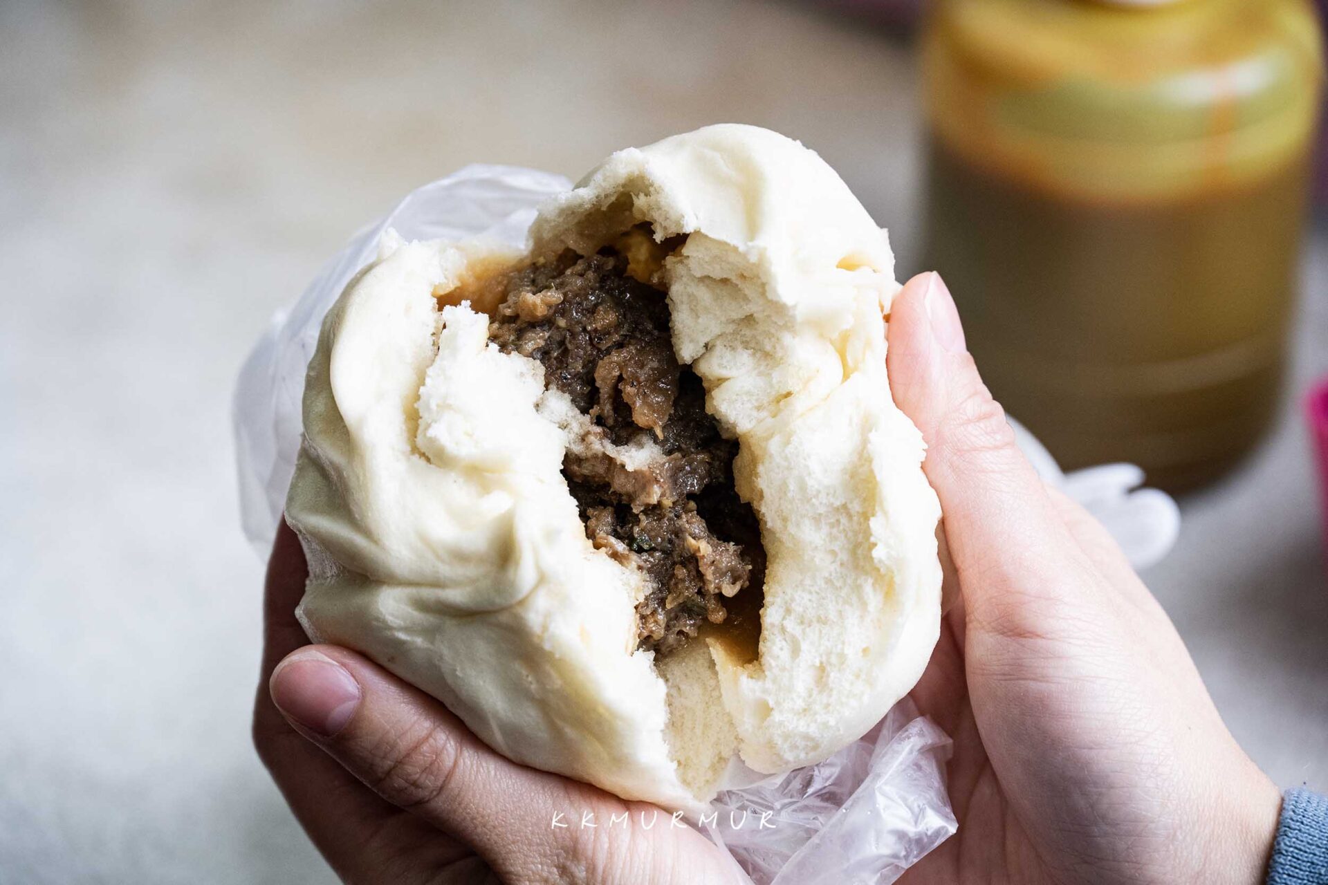 【肉包】的塊頭不小,麵皮口感不錯帶點勁道,也不會太厚或占比太多,肉餡口味很特別,有加入了黑胡椒與洋蔥來提味,這讓肉的鮮香交織了洋蔥的甘甜氣息,入喉時在感受到胡椒的辛香尾韻,覺得是還滿不錯吃的,且有不錯的記憶點。