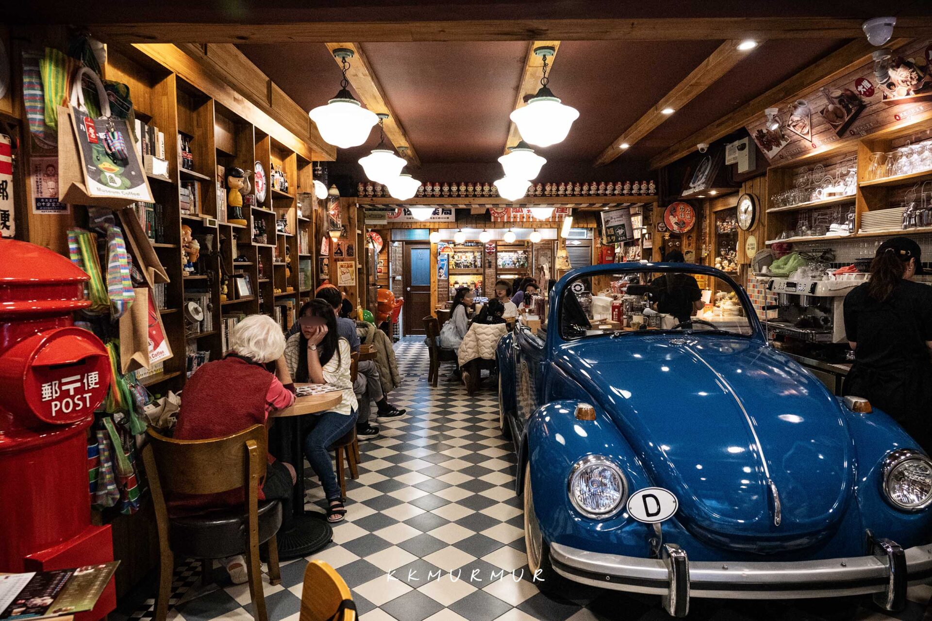 一進路【Museum Coffee 50年代博物館咖啡】,就看到那寶藍色的金龜車,著實是別有一番風味。我們是周末下午到訪,店內生意還是挺不錯的,因此若是想前來的客人,也可以提前打電話與服務人員預約訂位哦!