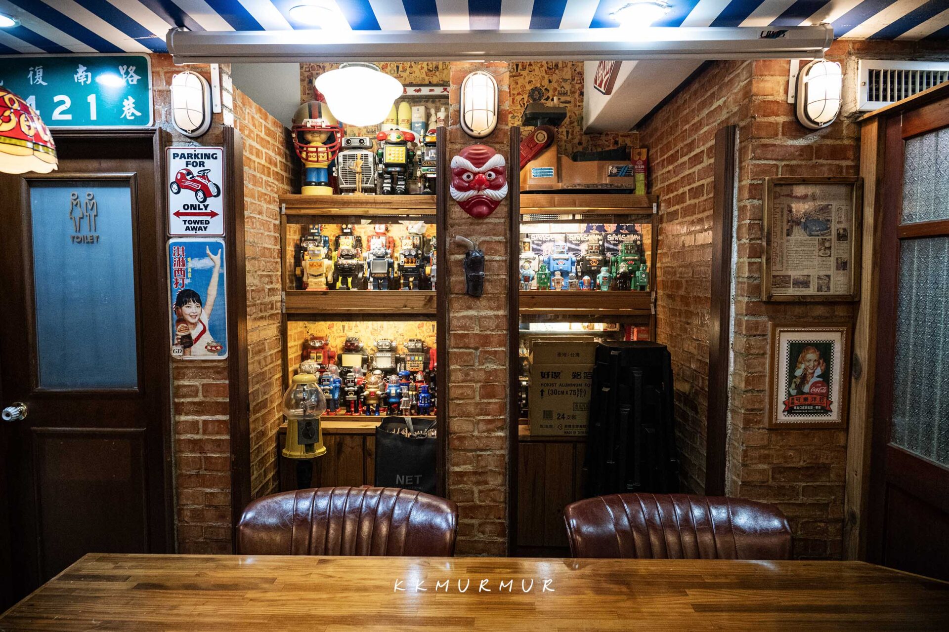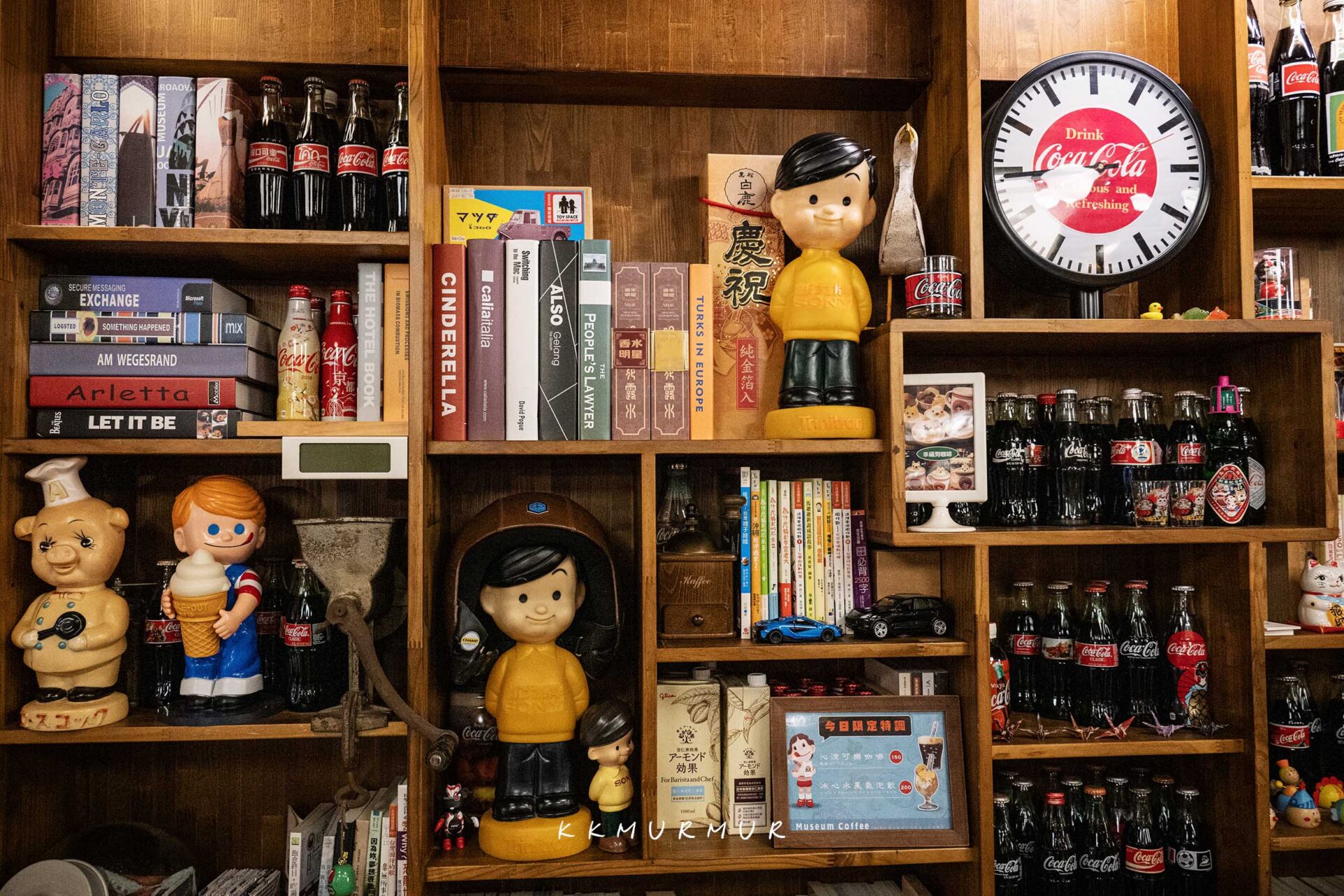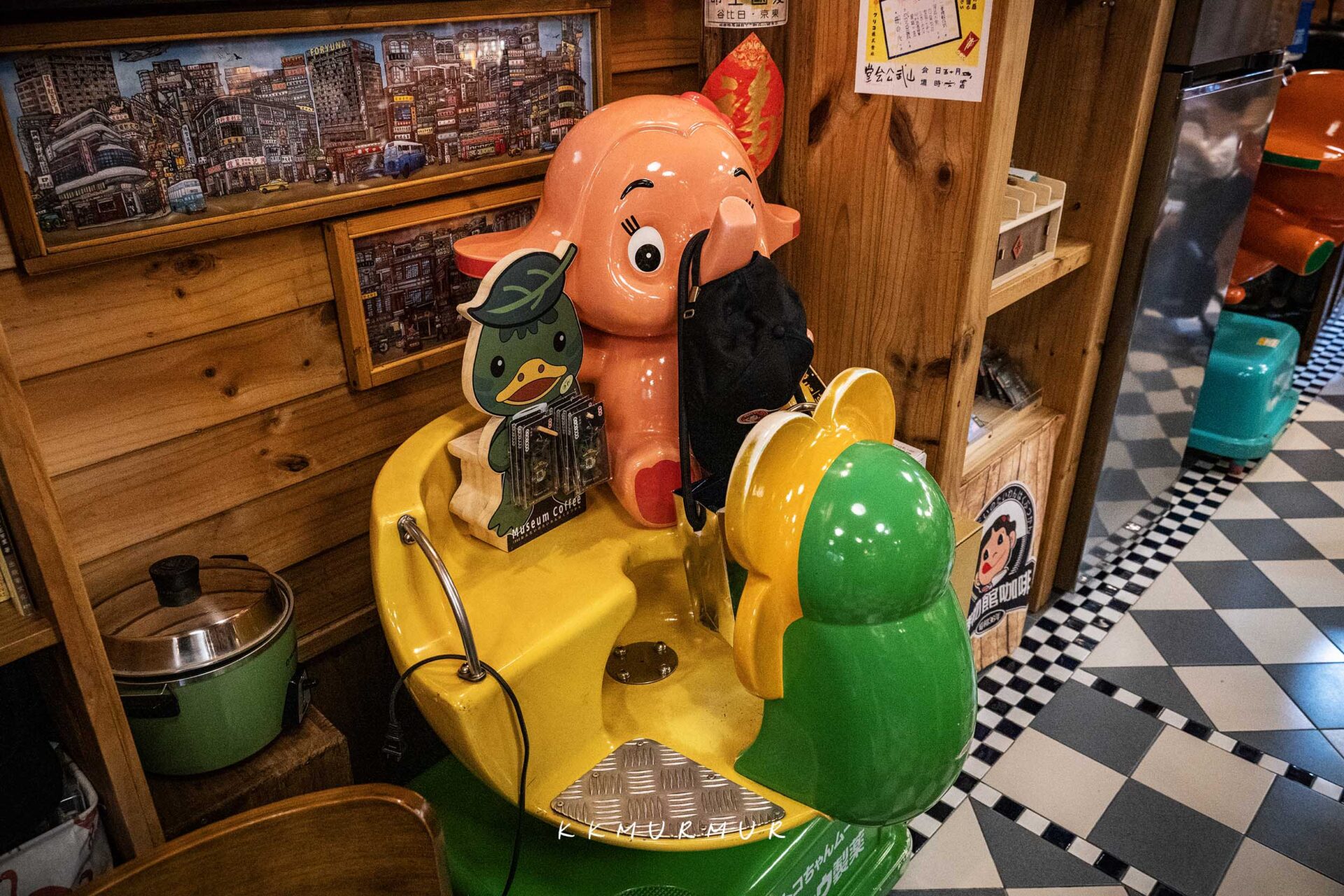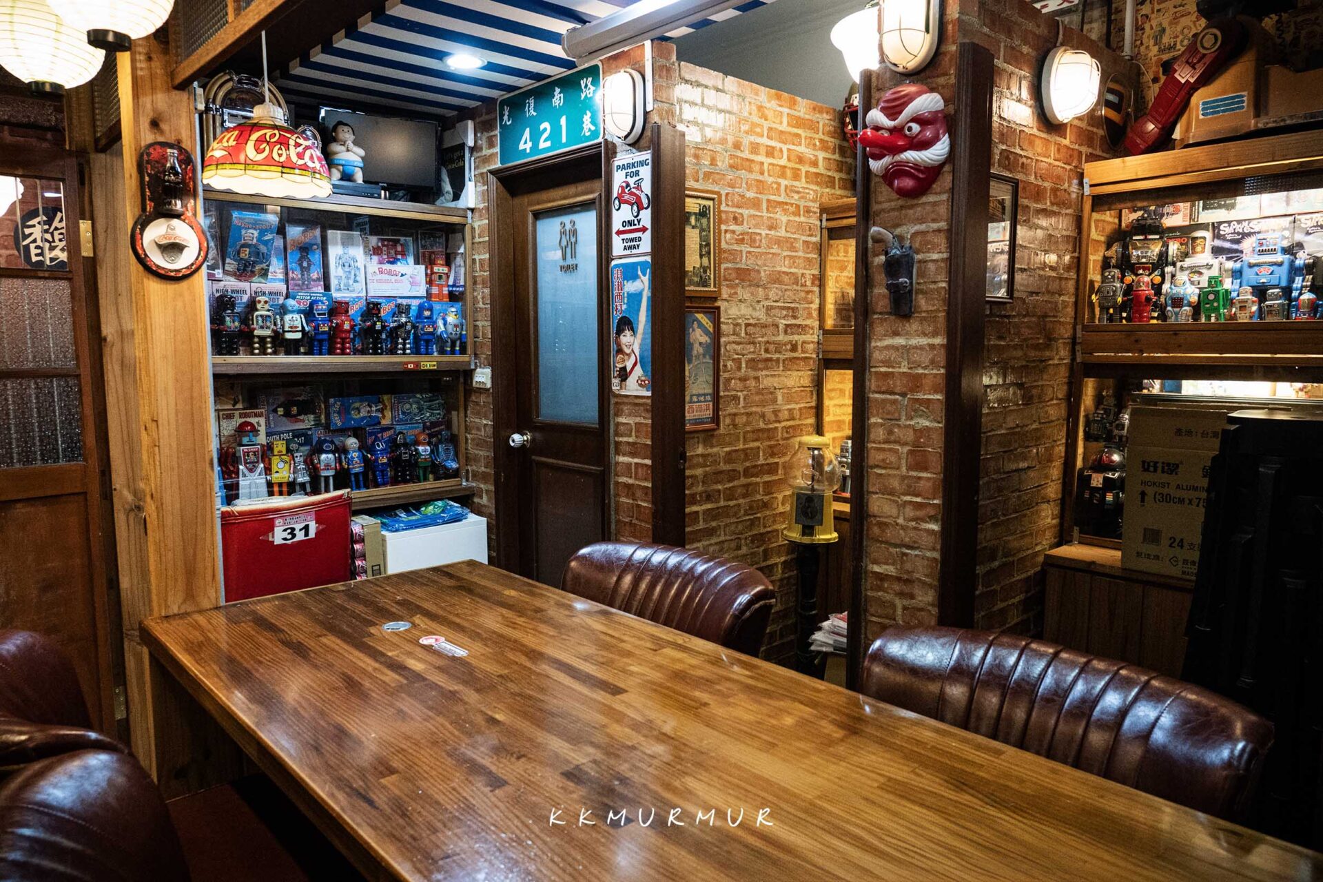 店內後方亦有這種大桌面的長桌座位區域可供使用,被各種老玩具、招牌給環繞的感覺,實在是很特別且讓人記憶猶新。